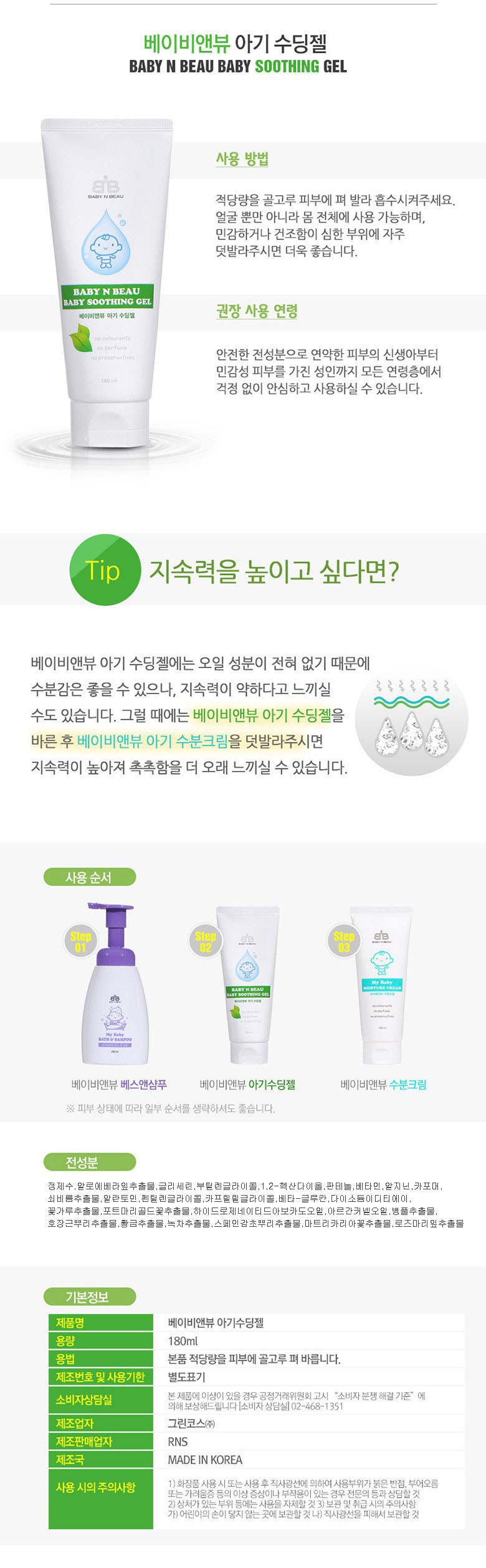 | 화장품제조업자, 화장품책임판매업자 및 맞춤형화장품판매업자 | 그린코스(주) / RNS | 제조국 | 대한민국 |