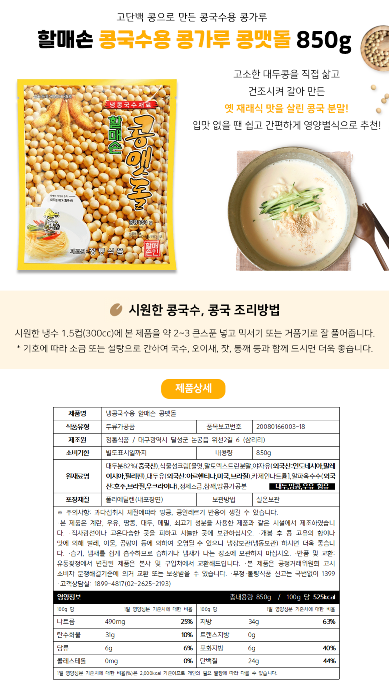 | 생산자 및 소재지 | 상품 상세페이지 참조 | 제조연월일, 소비기한 또는 품질유지기한 | 상품 상세페이지 참조 |