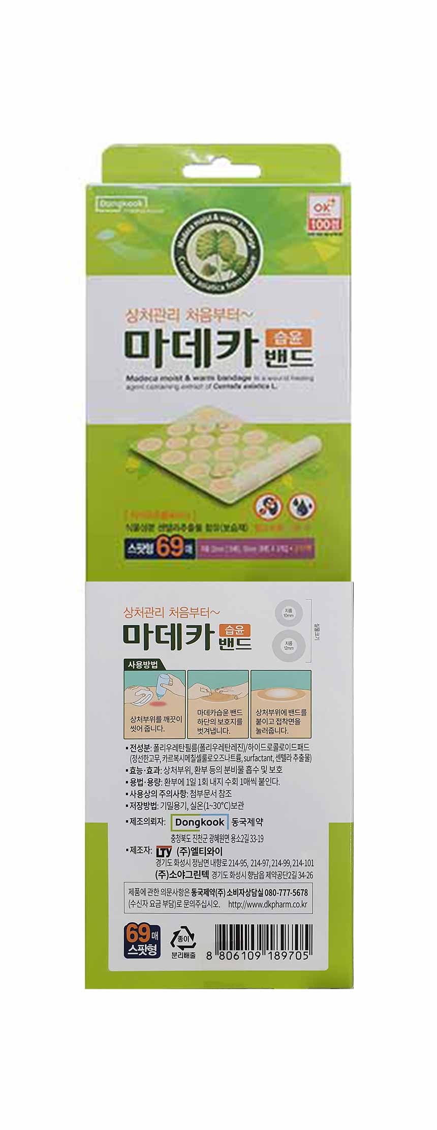 | 품명 및 모델명 | 마데카 습윤밴드 스팟형 | 인증/허가 사항 | 의약외품 |