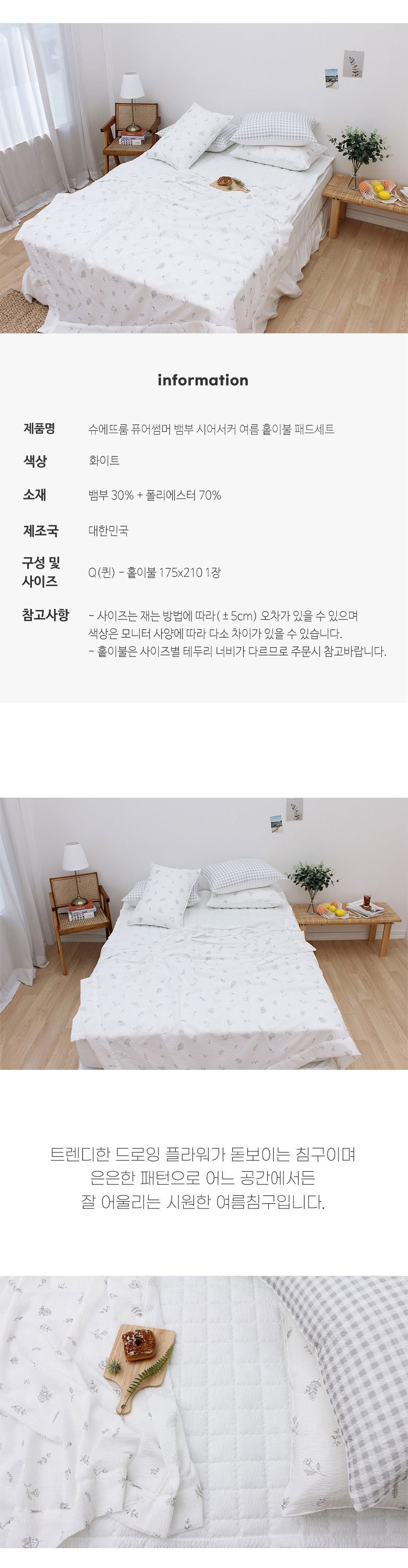 | 제품 소재 | 뱀부 30% + 폴리에스터 70% | 색상 | 화이트 |