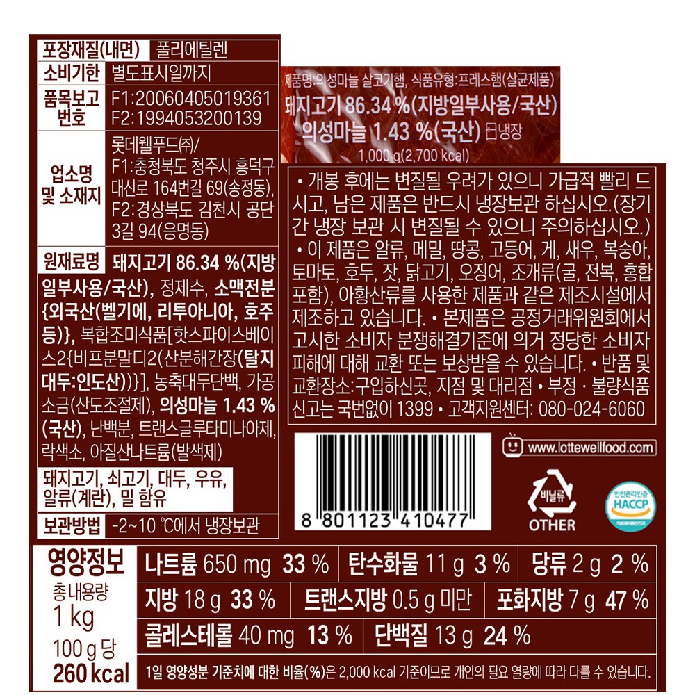 [롯데] 의성 마늘햄