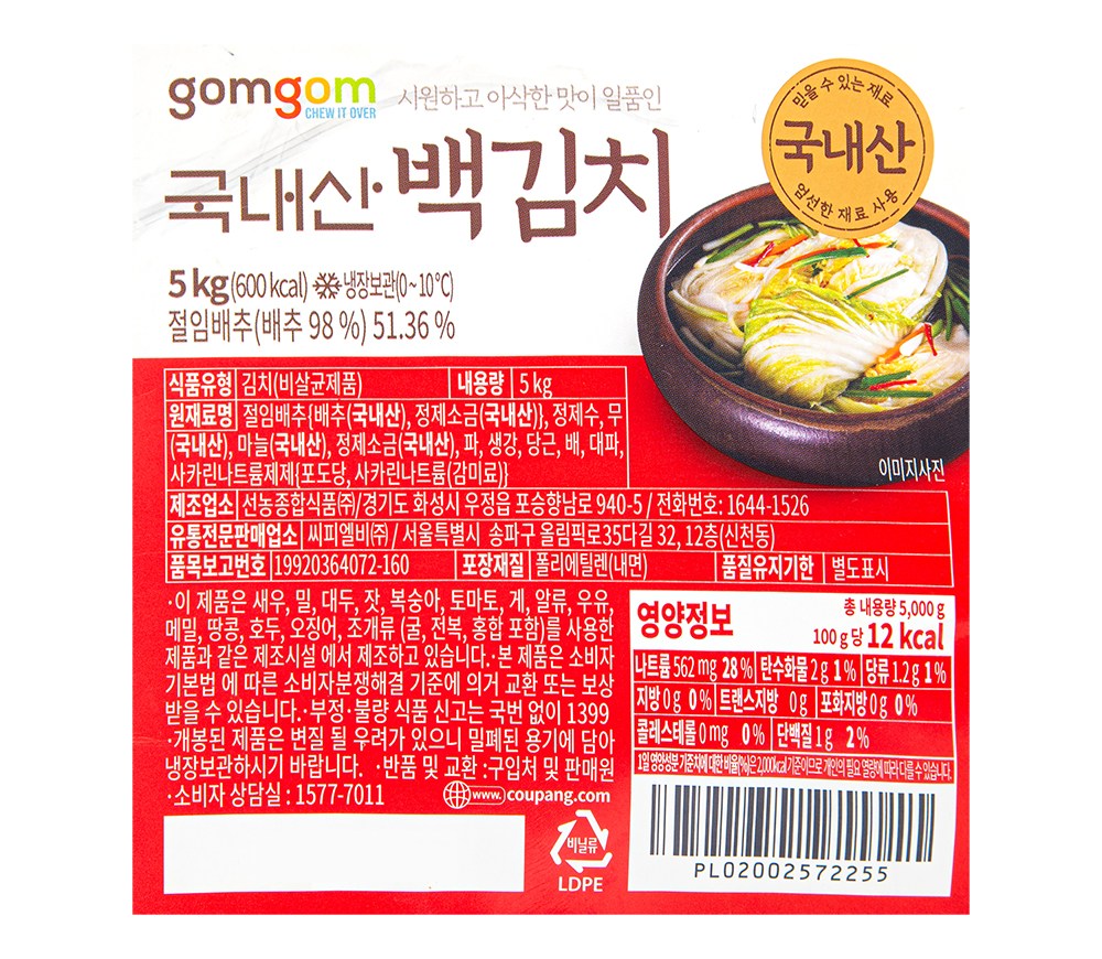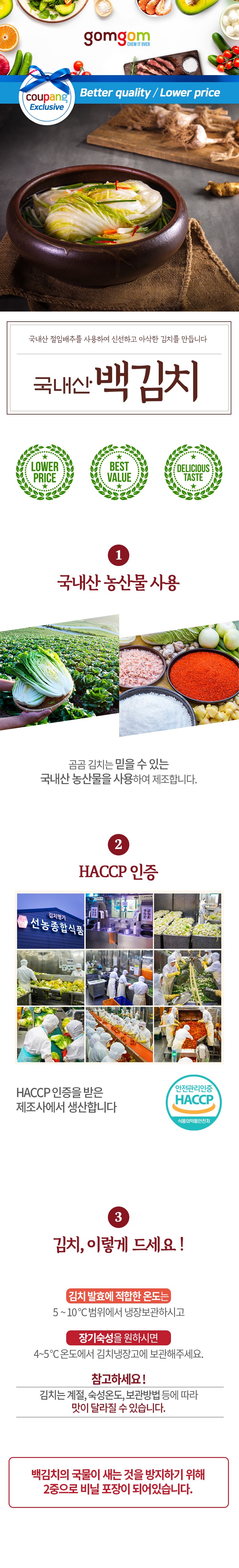 | 제품명 | gomgom 국내산 백김치 | 식품의 유형 | 컨텐츠 참조 |