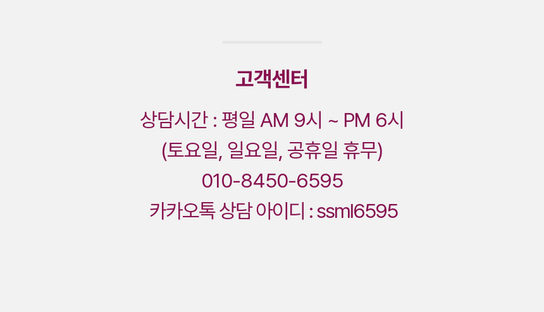 | 교환/반품 신청 기준일 | ㆍ단순변심에 의한 교환/반품은 제품 수령 후 7일 이내까지, 교환/반품 제한사항에 해당하지 않는 경우에만 가능 (배송비용과 교환/반품 비용 왕복배송비 고객부담) ㆍ상품의 내용이 표시·광고의 내용과 다른 경우에는 상품을 수령한 날부터 3개월 이내, 그 사실을 안 날 또는 알 수 있었던 날부터 |