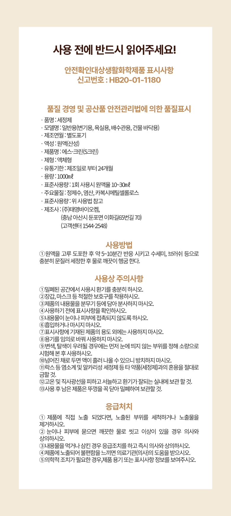 | 제조국(원산지) | 대한민국 | 제조자(수입자) | (주)태영바이오켐 |