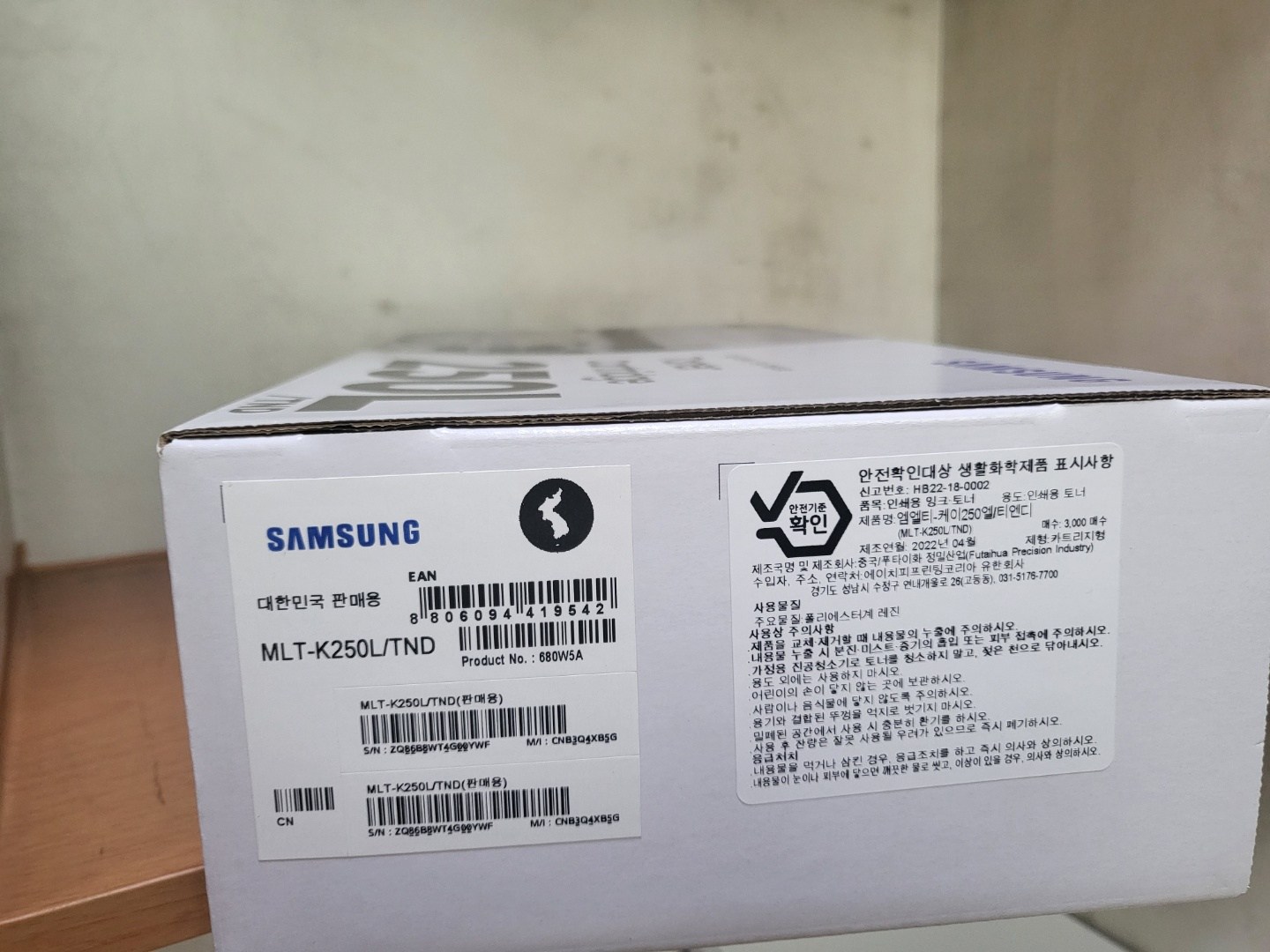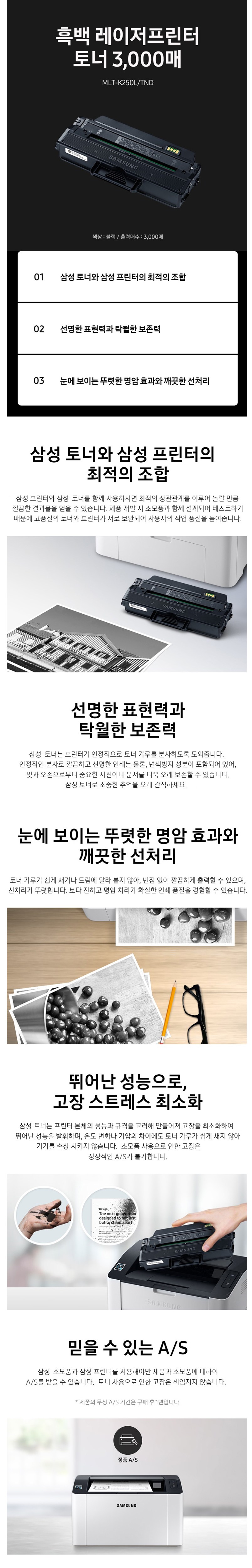 | 품목 및 제품명 | 인쇄용 잉크·토너 / 엠엘티-케이250엘/티엔디(MLT-K250L/TND) | 용도(표백제의 경우 계열을 함께표시) 및 제형 | 인쇄용 토너 / 비분사형-카트리지형 |