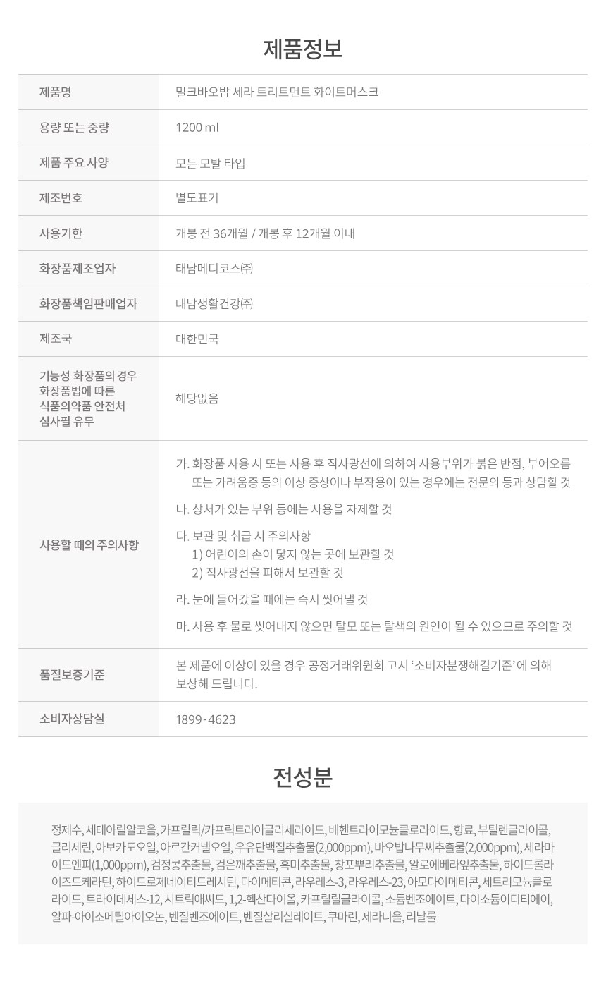 | 용량(중량) | 1200ml | 제품 주요 사양 | 모든 모발용 |