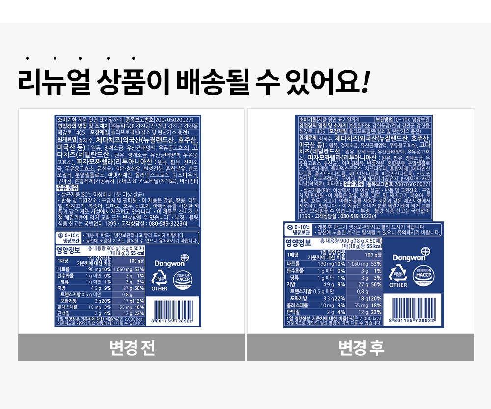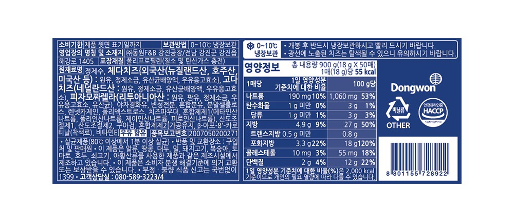 | 제품명 | 파티쉐 슬라이스치즈 | 식품의 유형 | 컨텐츠 참조 |