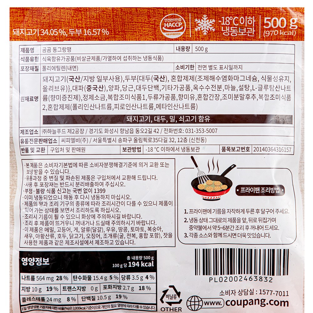 | 제품명 | 곰곰 동그랑땡 | 식품의 유형 | 컨텐츠 참조 |