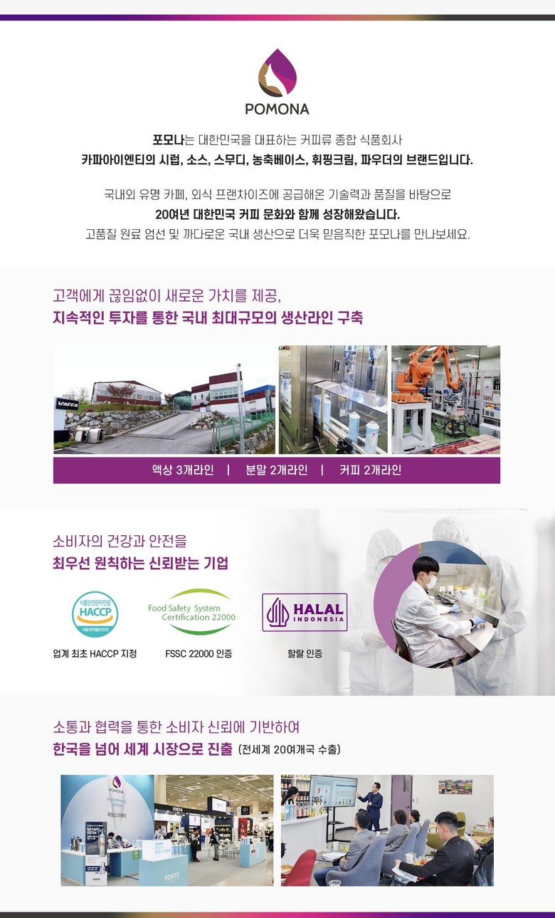 상호/대표자 | (주) 포르테커피 / 손삼호 | 사업장 소재지 | 경기도 성남시 분당구 운중로 117 포모나타워 8층 (운중동) |