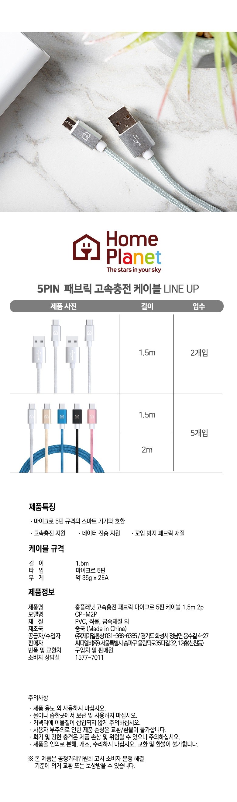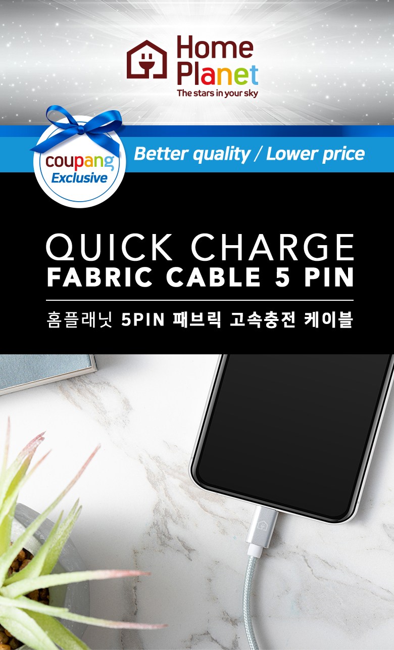 | 품명 및 모델명 | 홈플래닛 패브릭 고속충전케이블 5pin | 인증/허가 사항 | 해당없음 |