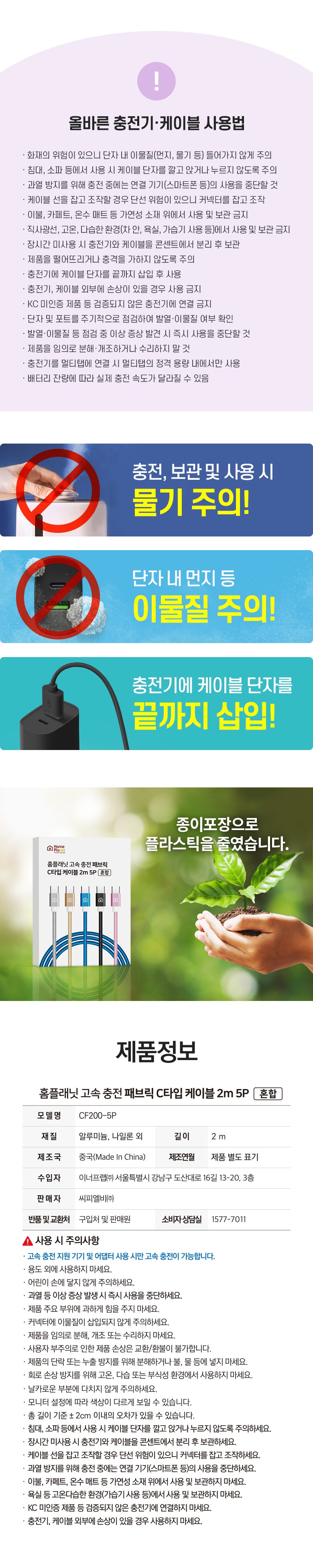 | 품명 및 모델명 | 홈플래닛 고속충전 케이블 C타입 | 인증/허가 사항 | 해당없음 |