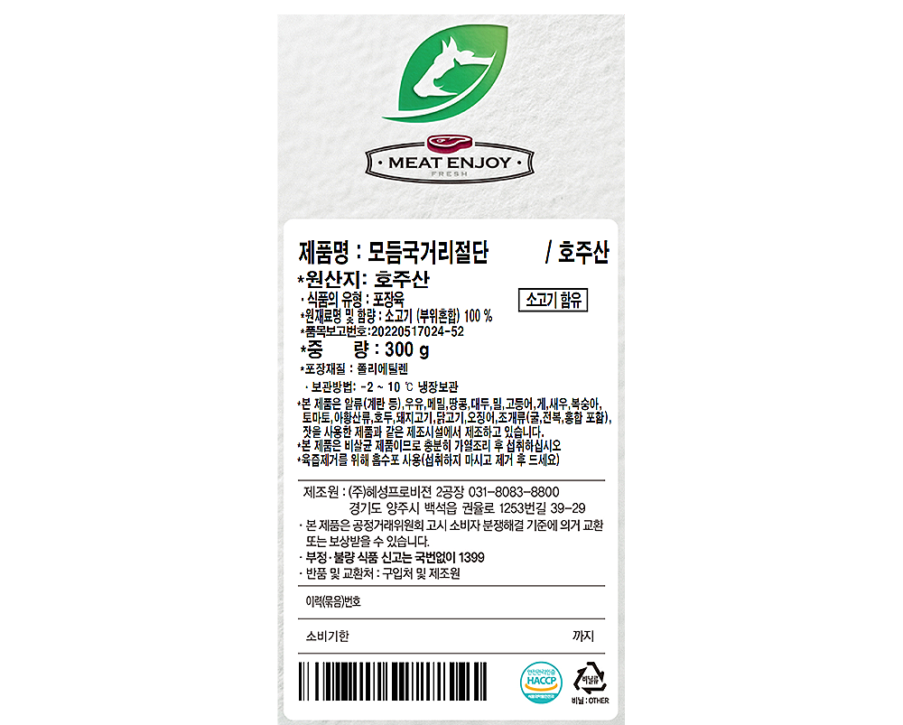 신선도를 유지하기 위해 MAP(Modified Atmospheres Packaging) 기법으로 포장했어요. 용기 내에 산소와 이산화탄소를 채워 고기의 맛과 품질을 유지합니다.