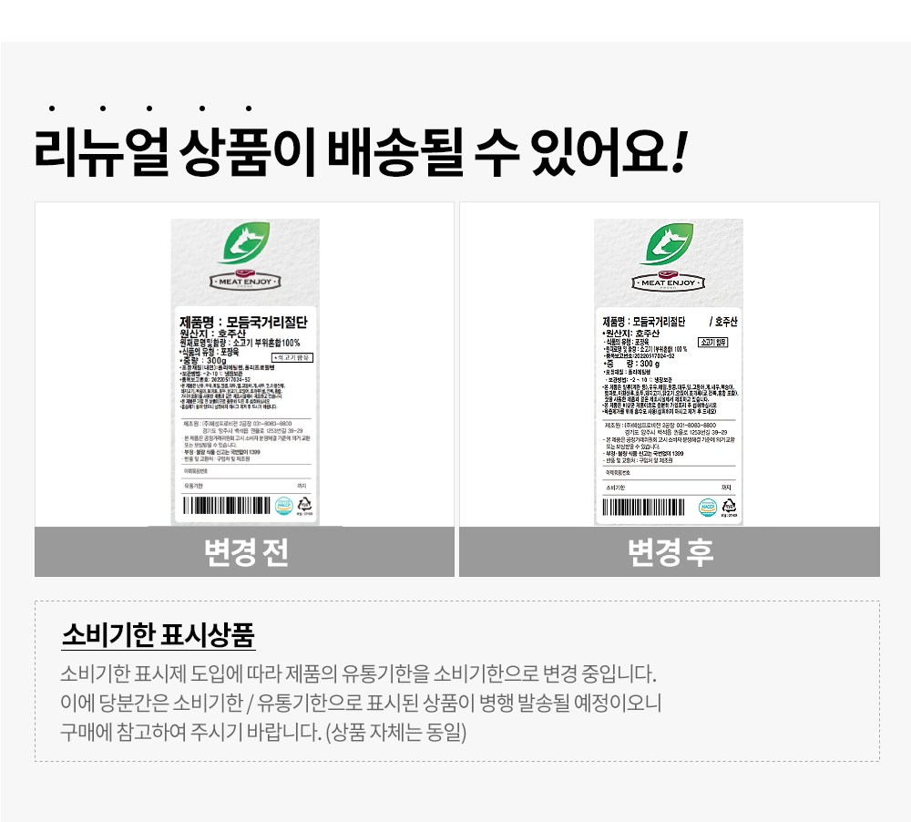 | 제조연월일, 소비기한 또는 품질유지기한 | 소비기한(또는 유통기한) : 2026년 03월 17일 이거나 그 이후인 상품 제조년월일 : 2026년 03월 10일 이후인 제조상품 | 세부 품목군별 표시사항 | 축산물 등급표시: 해당없음 / 이력번호 표시유무 - 이력번호 표시제품임 |