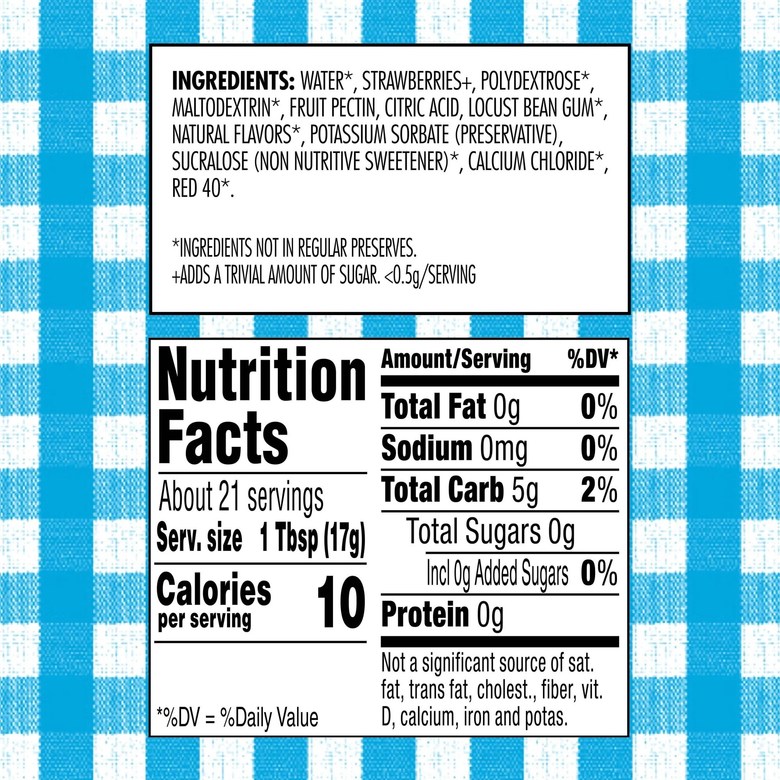칼로리가 낮은 무설탕 딸기잼입니다. 휘핑크림을 얹은 와플, 에인절 푸드 케이크 및 다크초콜릿 브라우니와 같은 디저트와 함께 곁들여 먹기 좋은 제품입니다.