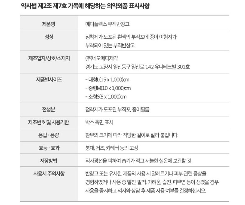 | 품명 및 모델명 | 메디플렉스부직반창고 | 인증/허가 사항 | 의약외품 |