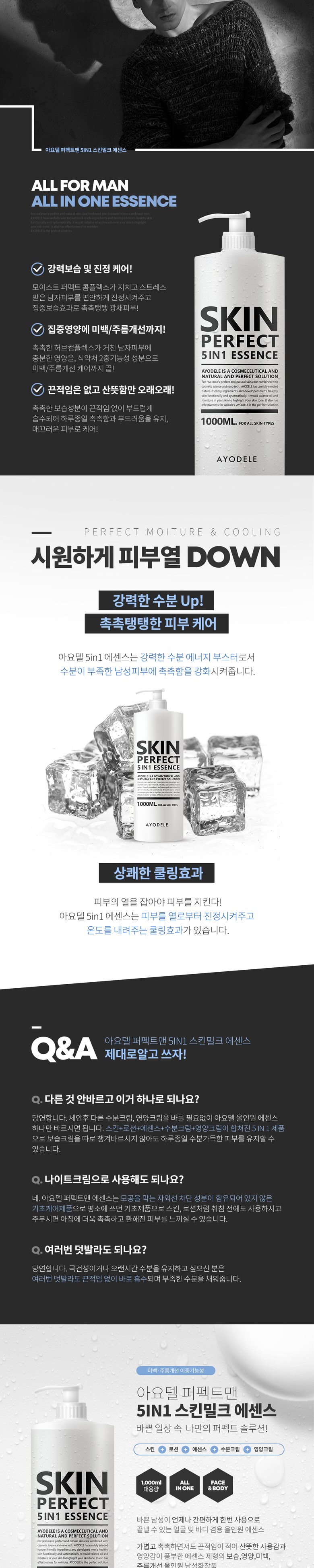 | 용량(중량) | *CJ대한통운 배송*** 아요델 퍼펙트맨 5IN1 남성 올인원 보습영양미백 기능성 에센스크림 1000ml | 제품 주요 사양 | 모든 피부용 / 순한 자연성분 / 얼굴&바디 겸용 / 스킨+로션+에센스+수분크림+영양크림 올인원 에센스크림 |