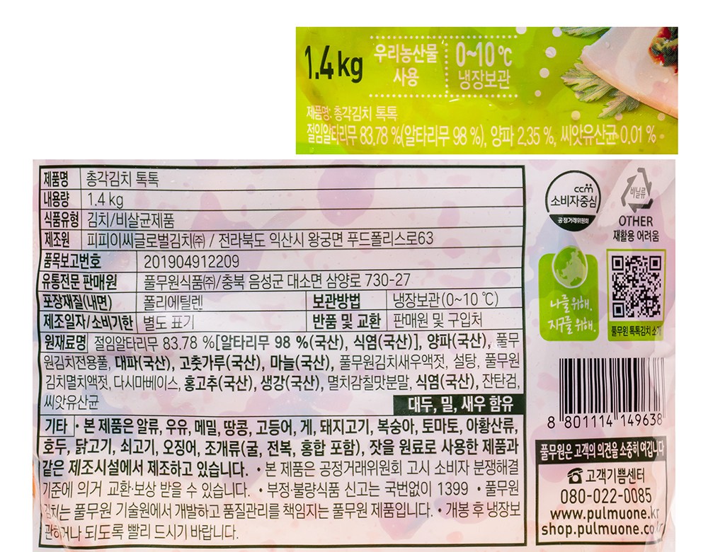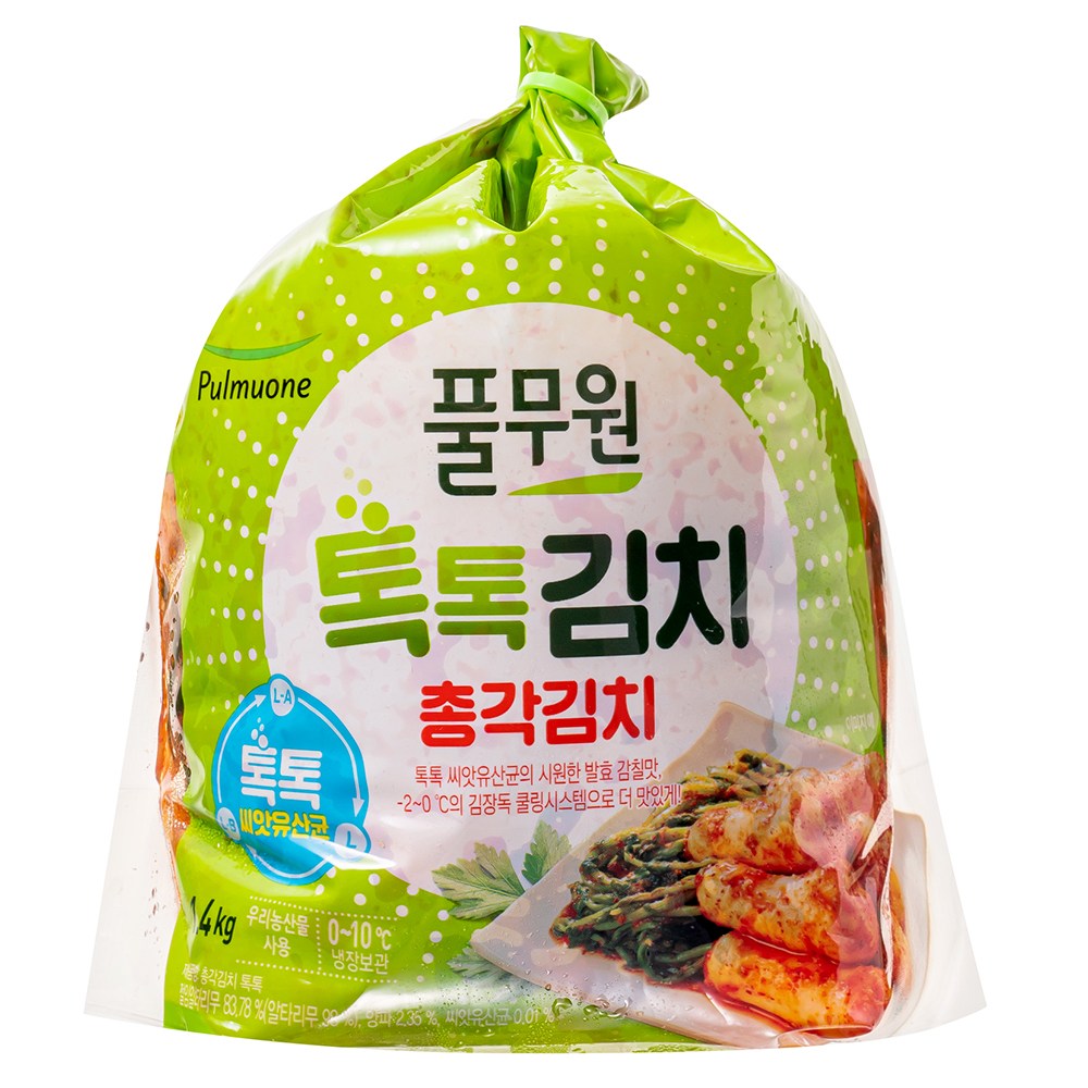 풀무원 톡톡 총각김치를 소개드릴게요. 옛 선조들의 지혜가 담긴 김장독 원리를 톡톡히 활용하여 담가 그 맛이 더욱 일품이에요. 김치 원료의 첫 입고부터, 직접 받아 보시는 배송 단계까지 일정한 온도에서 보관하는 김장독 쿨링 시스템(Cooling System)을 적용했기 때문에 어린 알타리무와 무 줄기까지 모두 오래오래 신선하고 아삭해요. 게다가 사이다의 탄산처럼 혀끝에서 톡톡 터지는 ‘씨앗 유산균’이 함유되어있어 무척 깔끔하고 시원하답니다. 믿음직스럽고 건강한 톡톡 총각김치로 청량하고 아삭한 맛을 경험해보세요.