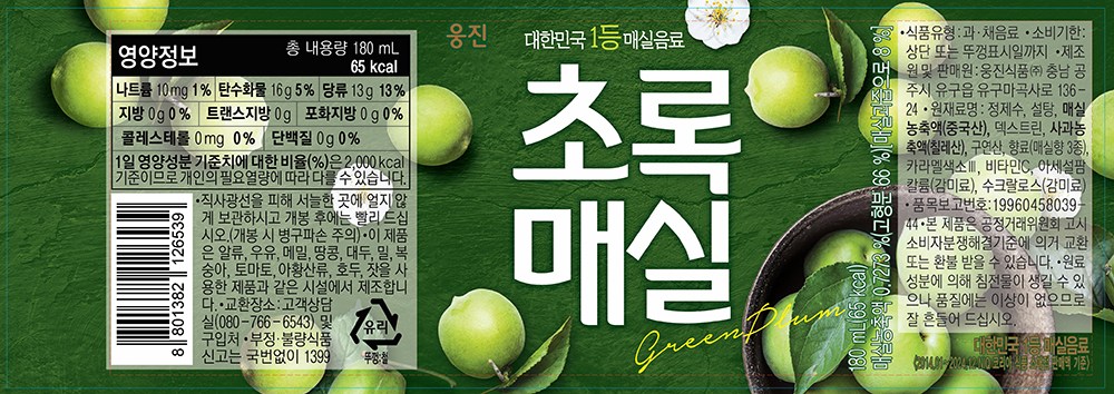 | 제품명 | 초록매실 | 식품의 유형 | 과채음료 |