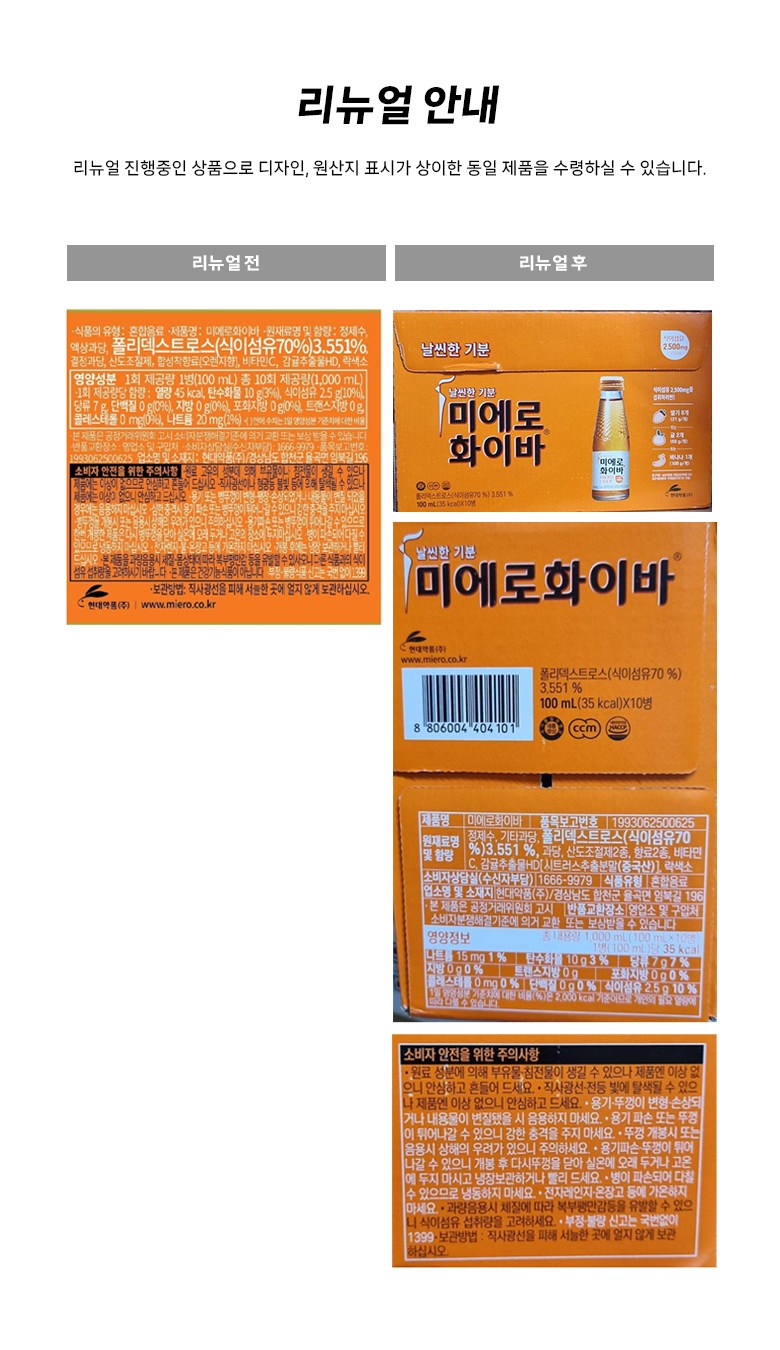 | 제품명 | 미에로화이바 | 식품의 유형 | 혼합음료 |