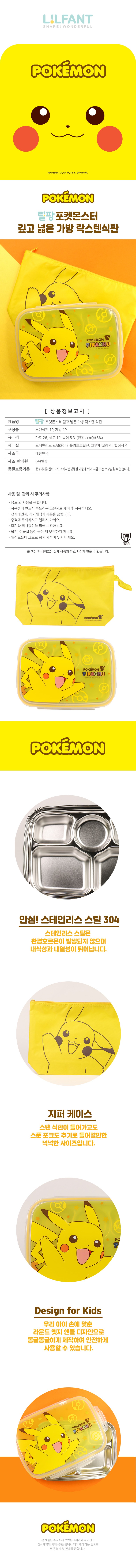 | 품명 및 모델명 | 릴팡 포켓몬스터 깊고넓은 가방락 스텐식판 PK6475 노란색 가방 + 식판 | KC 인증정보 | 유/KC마크 |
