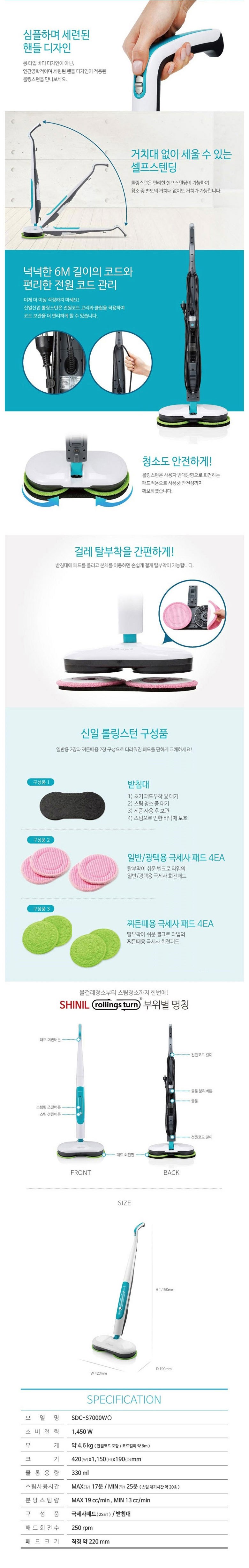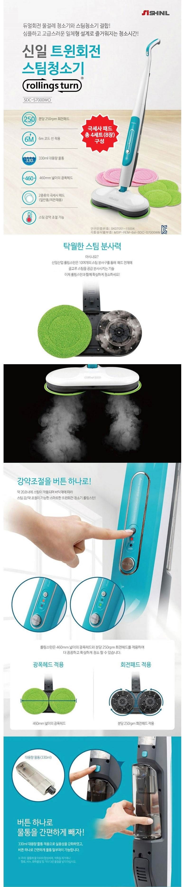 - 분당 250RPM의 회전 패드를 장착한 스팀 청소기