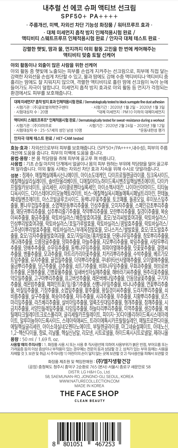 | 용량(중량) | 50ml | 제품 주요 사양 | 모든 피부용 |