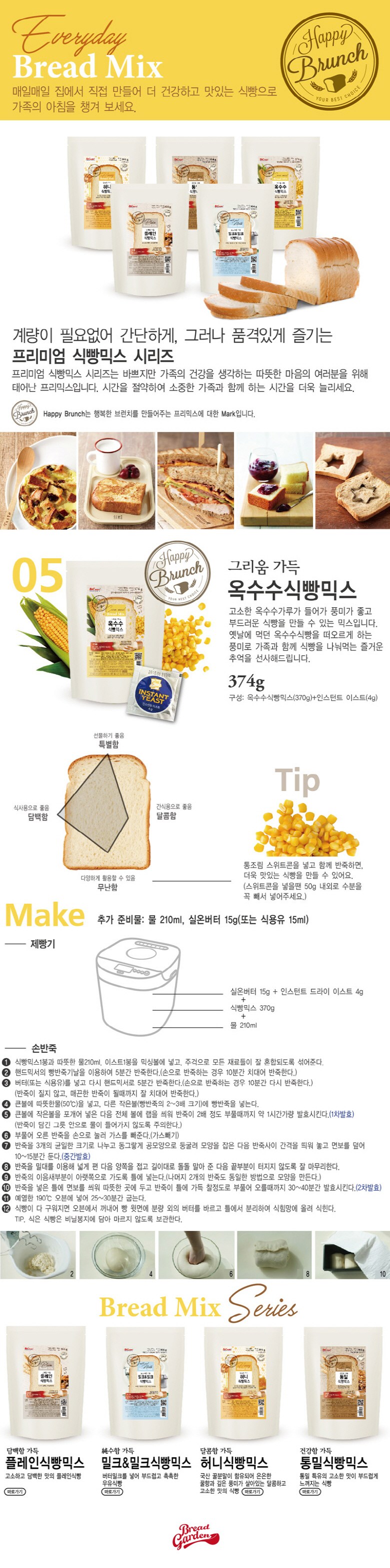 | 제품명 | 그리움 가득 옥수수 식빵믹스 | 식품의 유형 | 곡류가공품 |