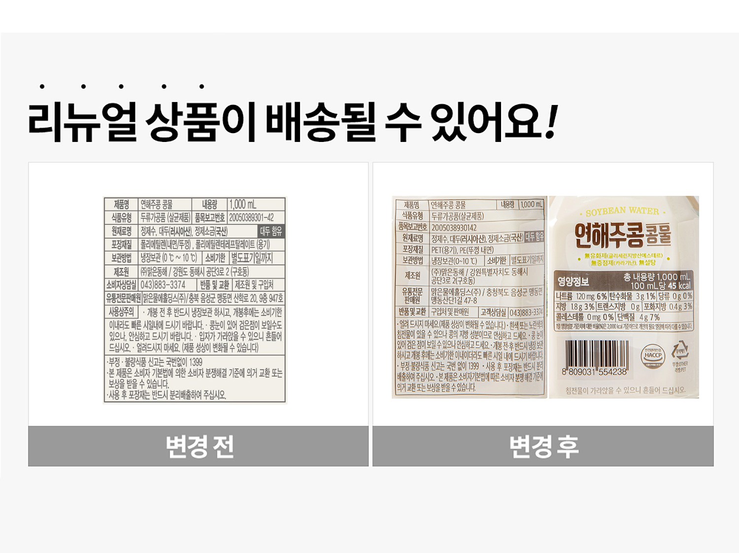 | 포장단위별 내용물의 용량(중량), 수량 | 1L x 2개 | 원재료명 및 함량 | 컨텐츠 참조 |