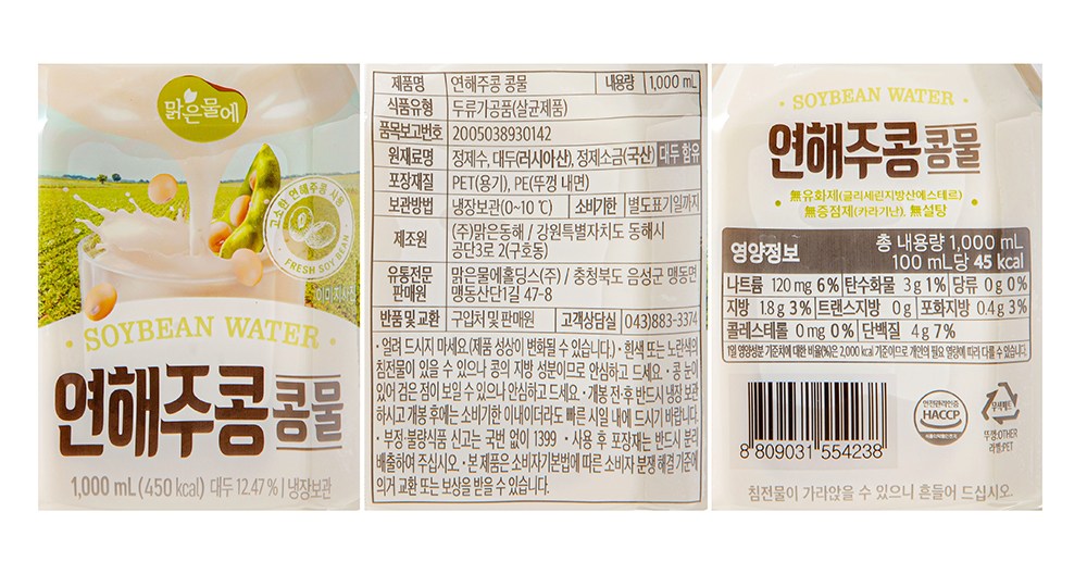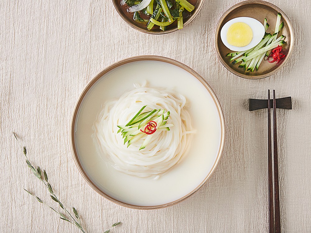 고소한 풍미가 돋보이는 맑은물에 콩물이에요. 물, 대두, 소금만 사용하여 콩 본연의 고소함이 잘 전달되죠. 맛만큼이나 부드러운 목 넘김도 매력이랍니다. 출출할 때 한 컵씩 따라 마셔도 좋고요. 잘 삶은 소면만 준비하면 맛있는 콩국수 한 그릇이 뚝딱 완성돼요.