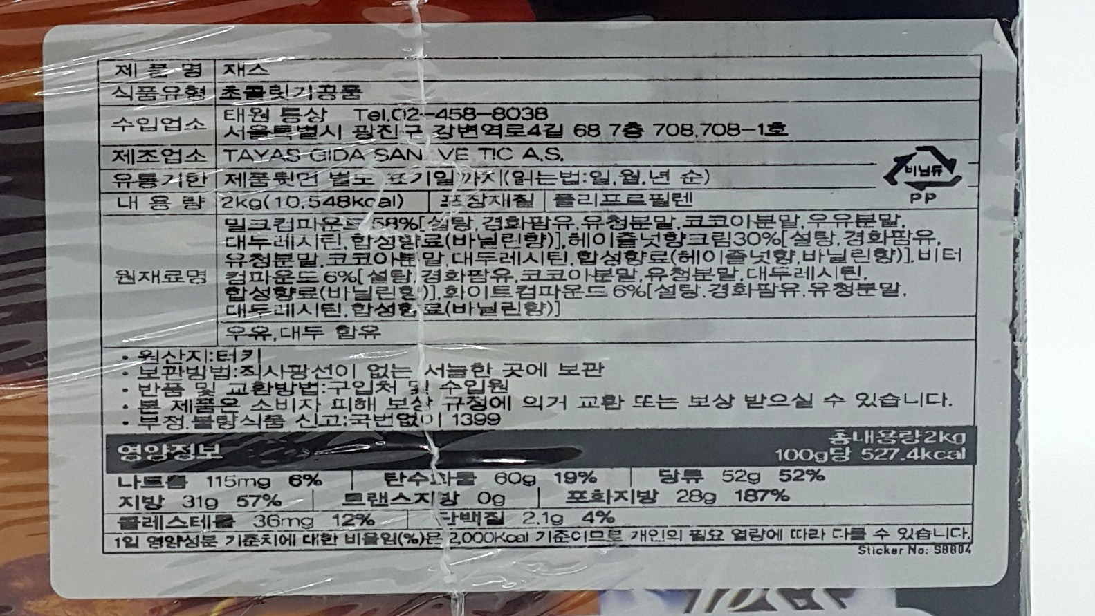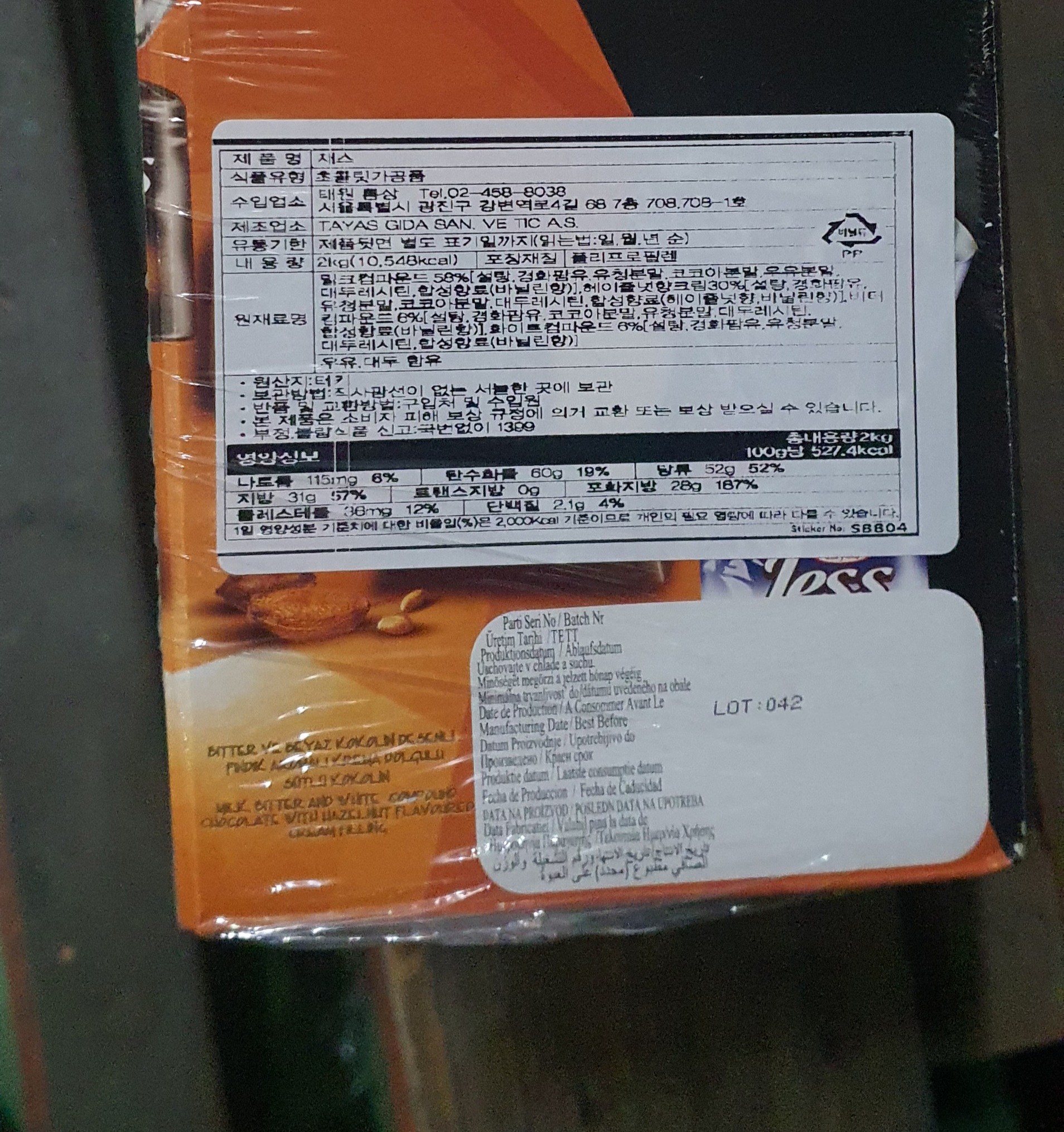 | 제품명 | 타야스 제스 초콜릿 | 식품의 유형 | 컨텐츠참조 |