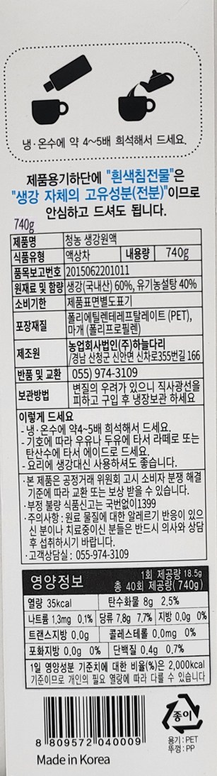| 포장단위별 내용물의 용량(중량), 수량 | 740g , 1개 | 원재료명 및 함량 | 컨텐츠 참조 |