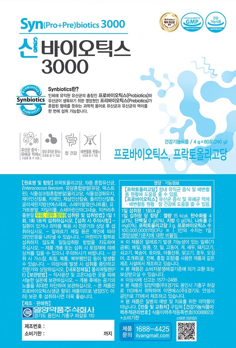 | 제품명 | 신바이오틱스3000 | 제조업소의 명칭과 소재지 | 컨텐츠참조 |