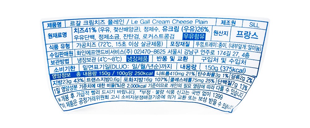 | 제품명 | 르갈 크림치즈 | 식품의 유형 | 가공치즈 |