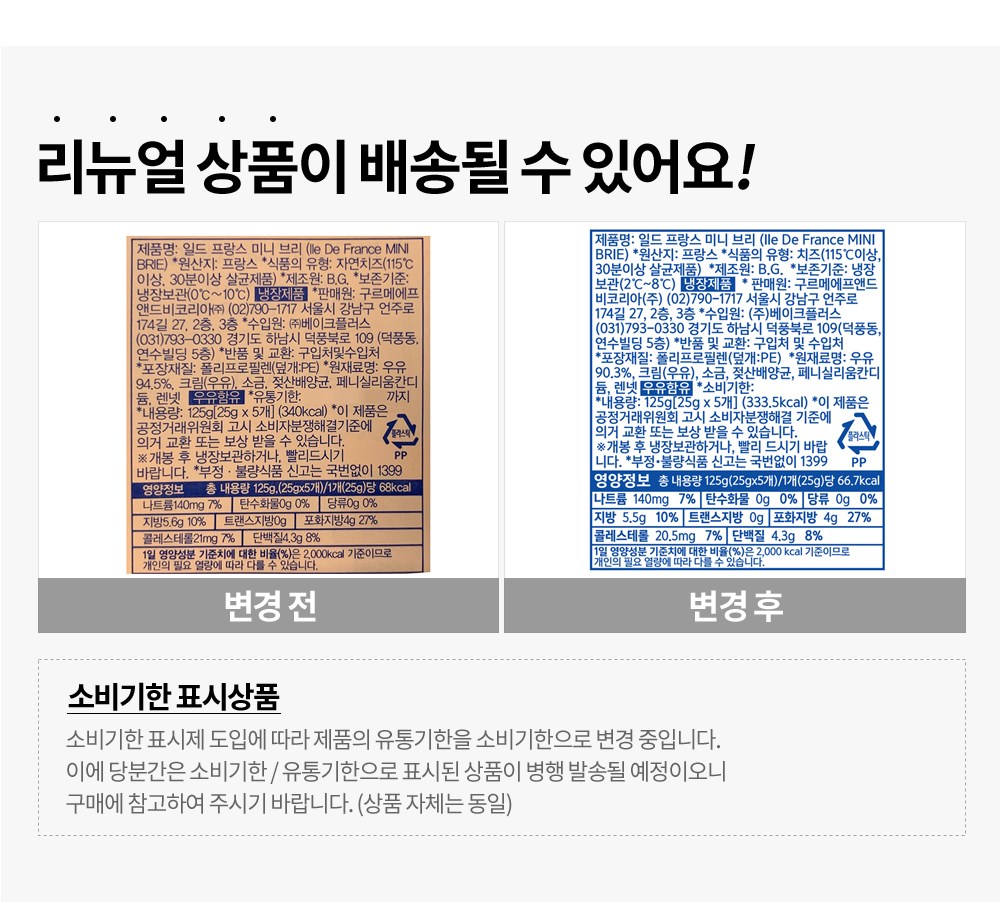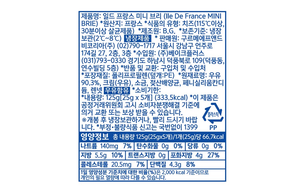 | 제품명 | 미니브리 | 식품의 유형 | 자연치즈 |