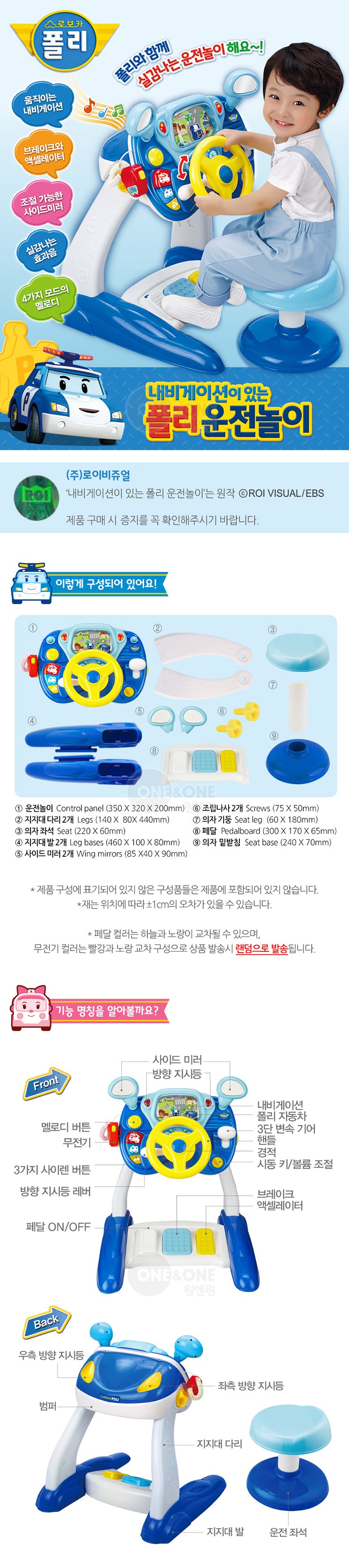| 품명 및 모델명 | 원앤원 로보카폴리 내비게이션이 있는 폴리 운전놀이 멜로디완구 | KC 인증정보 | CB063R10146-2001 |