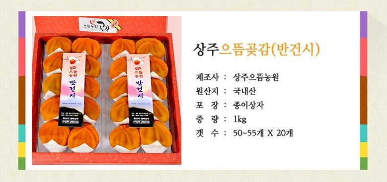 | 생산자(수입자) | 상주으뜸농원곶감 | 원산지 | 경북상주 |