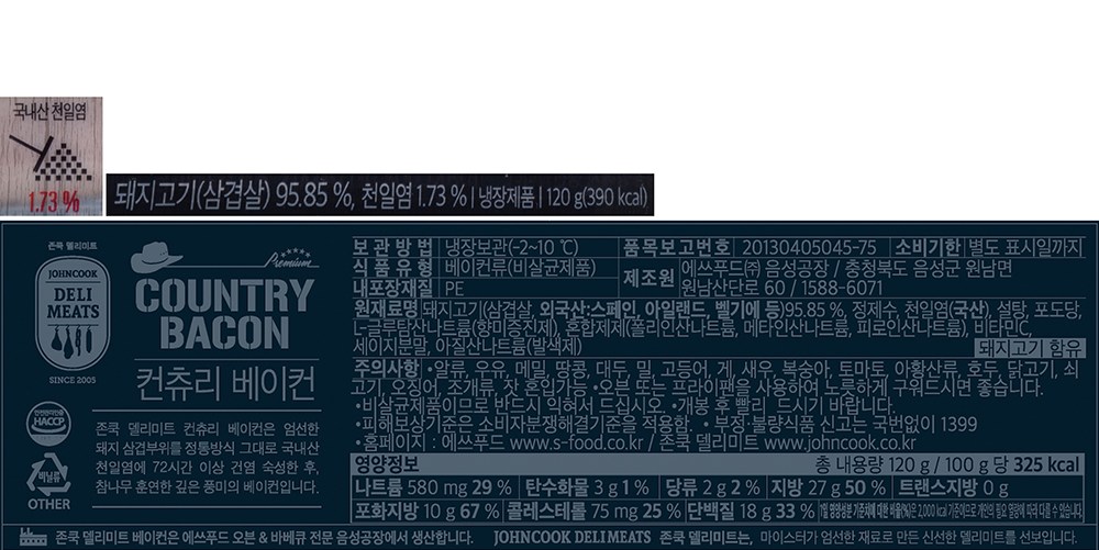 | 제품명 | 컨츄리베이컨 | 식품의 유형 | 컨텐츠 참조 |