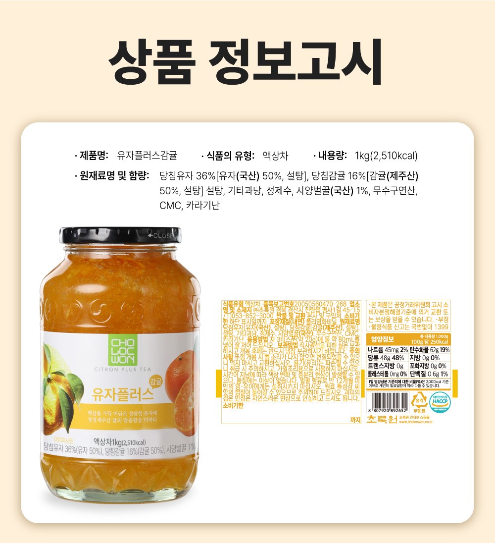 | 제품명 | 유자플러스감귤 | 식품의 유형 | 컨텐츠 참조 |