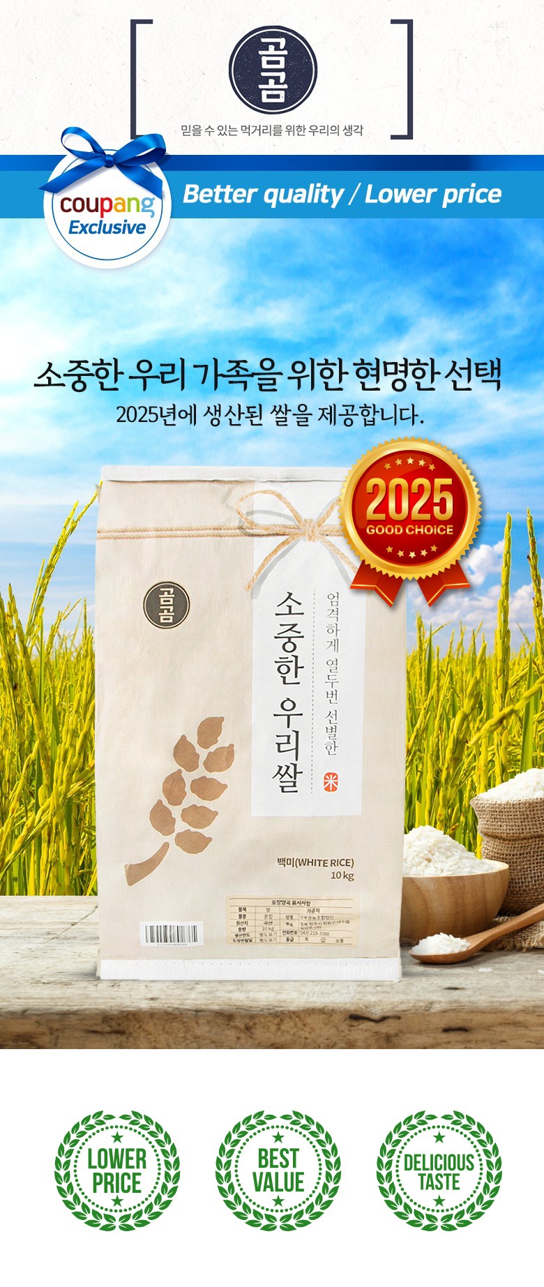 | 품목 또는 명칭 | 곰곰 소중한 우리 쌀 | 포장단위별 내용물의 용량(중량),수량,크기 | 10kg, 1개 |