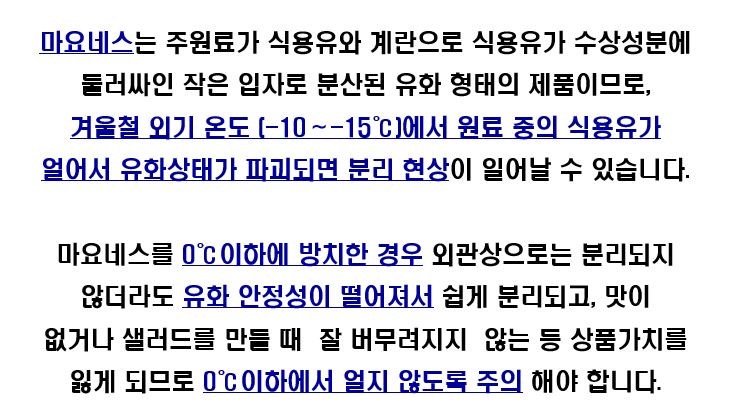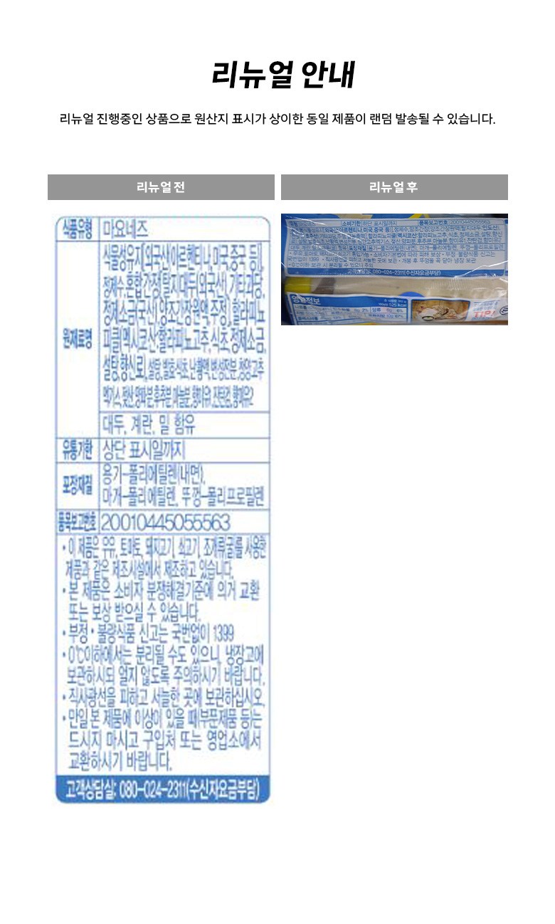 | 제품명 | 컨텐츠 참조 | 식품의 유형 | 마요네즈 |