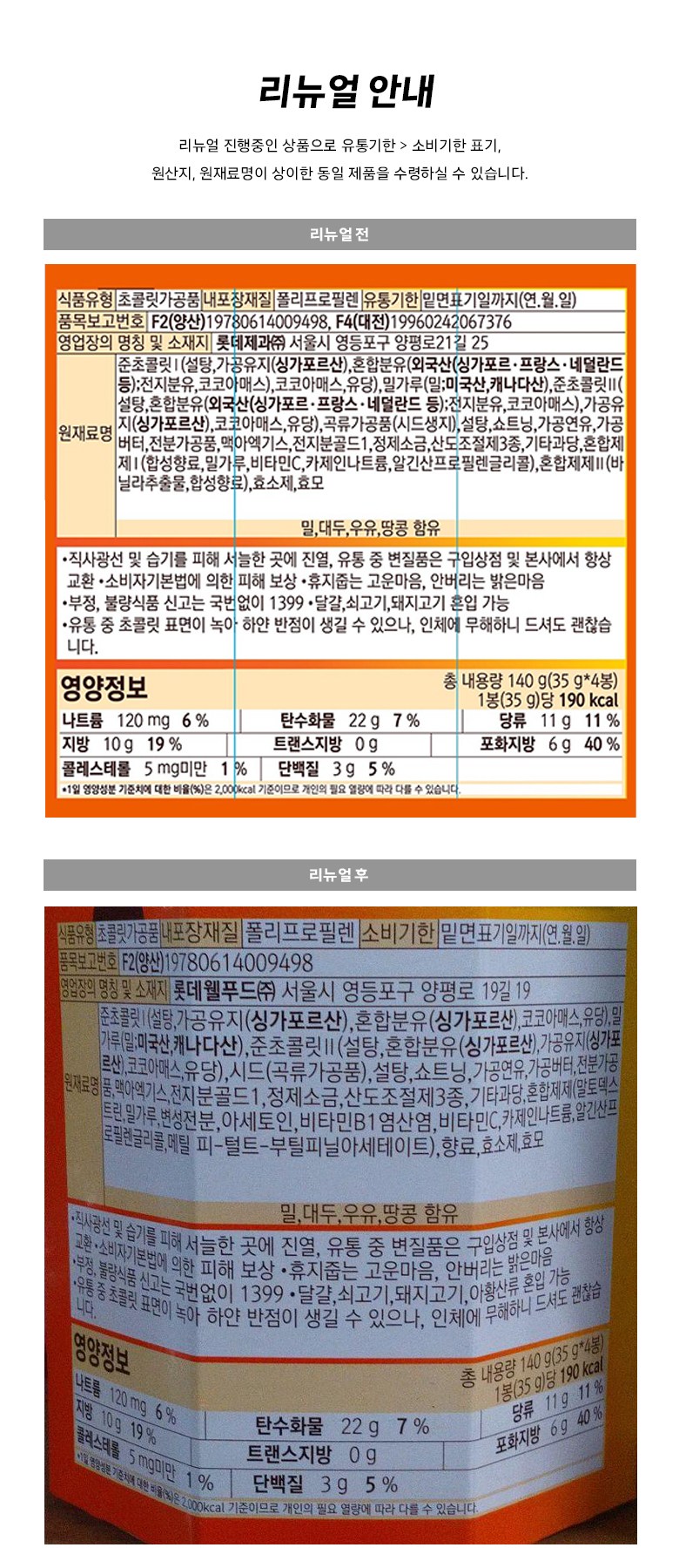 | 생산자 및 소재지 | 컨텐츠 참조 | 제조연월일, 소비기한 또는 품질유지기한 | 소비기한(또는 유통기한) : 2026년 05월 19일 이거나 그 이후인 상품 제조년월일 : 2025년 01월 30일 이후인 제조상품 |
