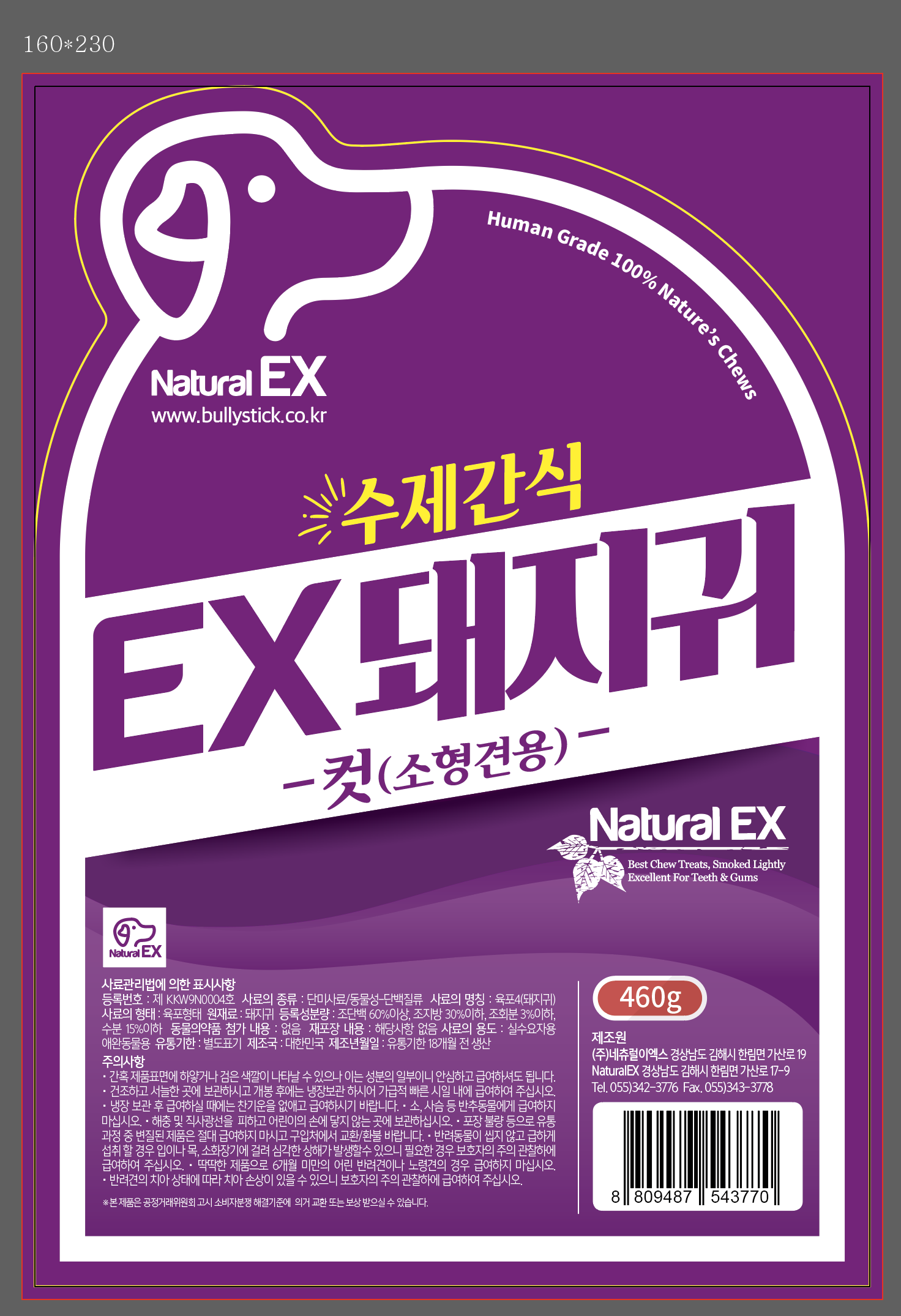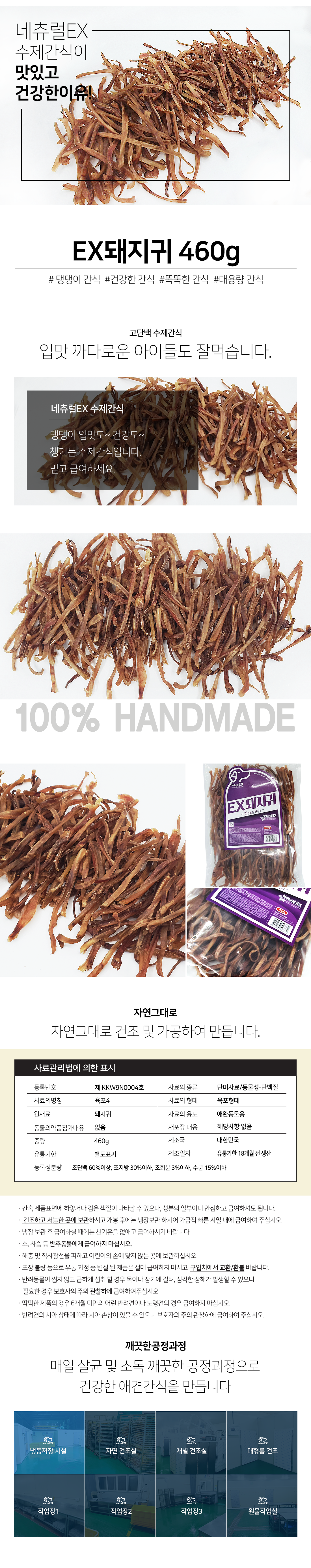 | 품명 및 모델명 | 수제간식 EX돼지귀 컷 (소형견용) | 인증/허가 사항 | 사료관리법에 따른 성분등록번호 : 컨텐츠 참조 |