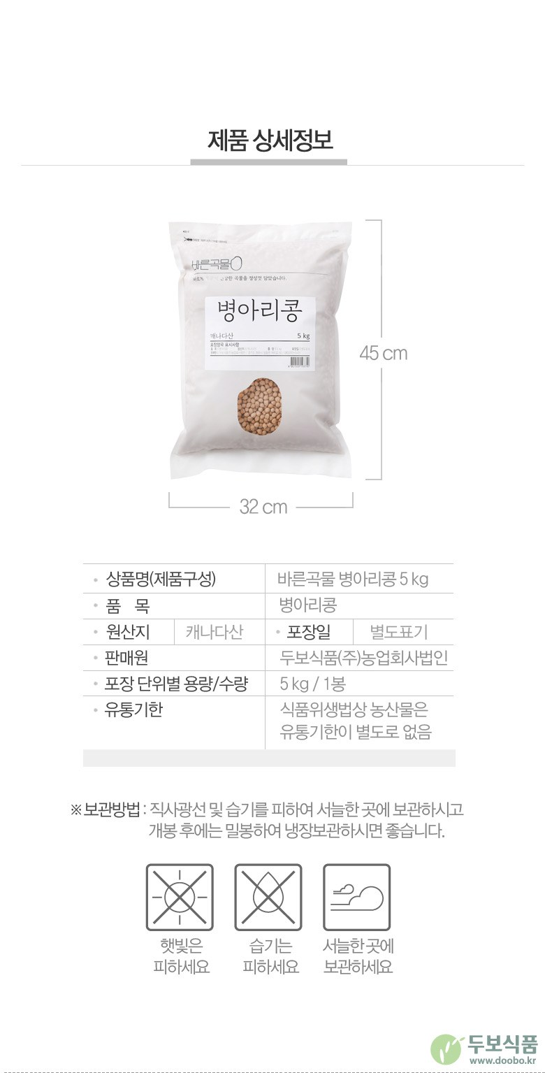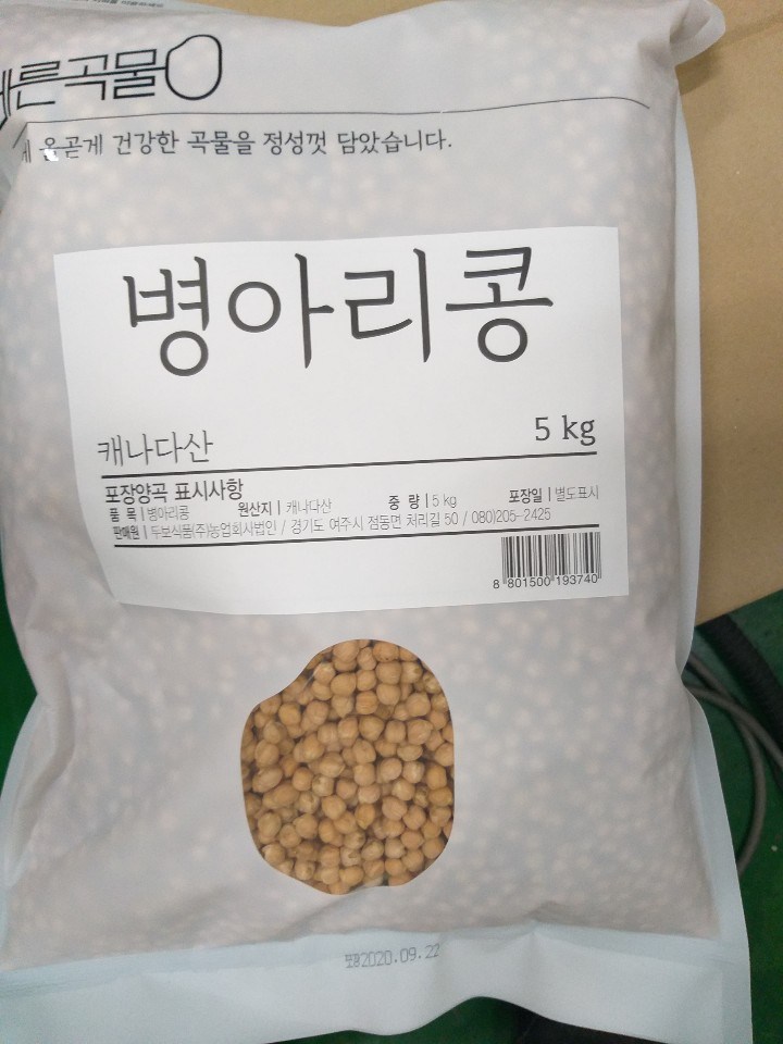 | 품목 또는 명칭 | 바른곡물 병아리콩 | 포장단위별 내용물의 용량(중량),수량,크기 | 5kg x 2개,1개 |