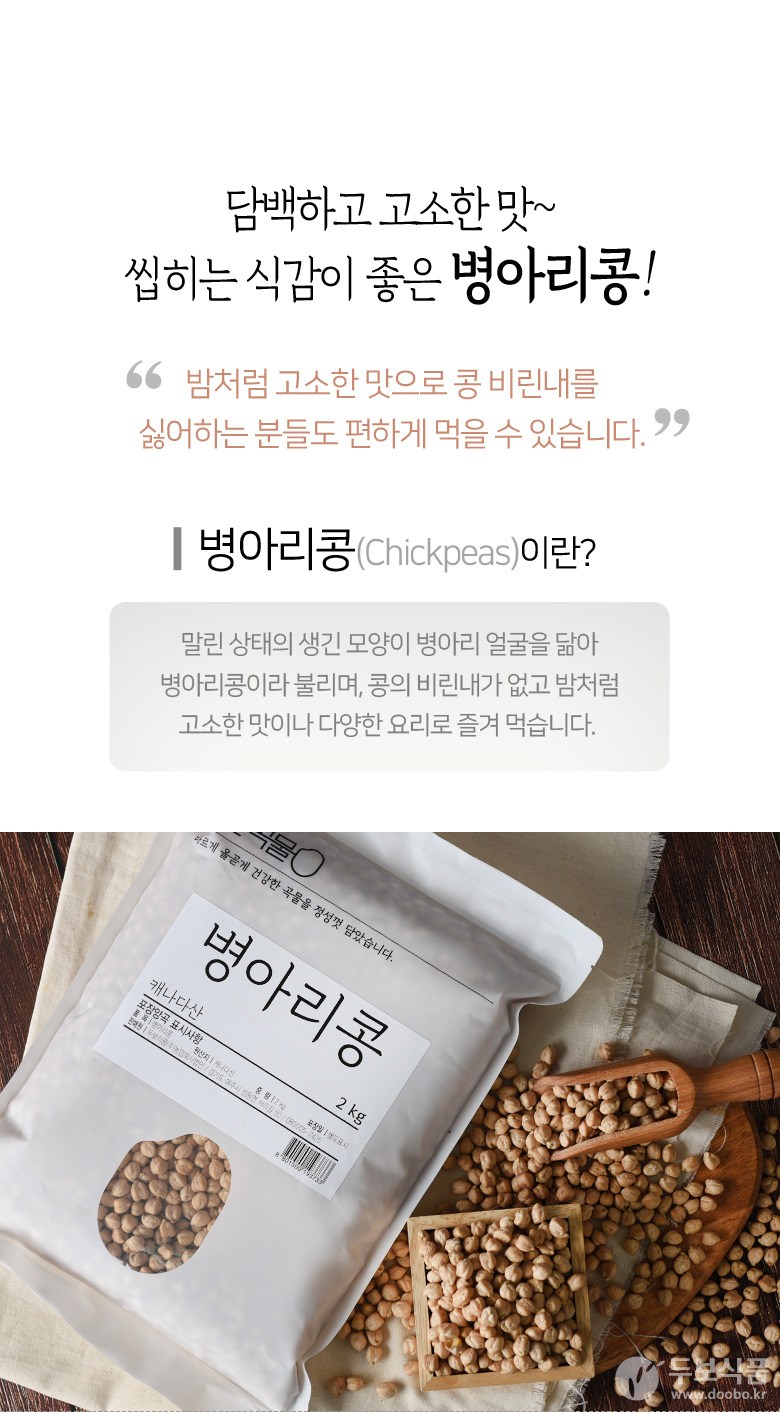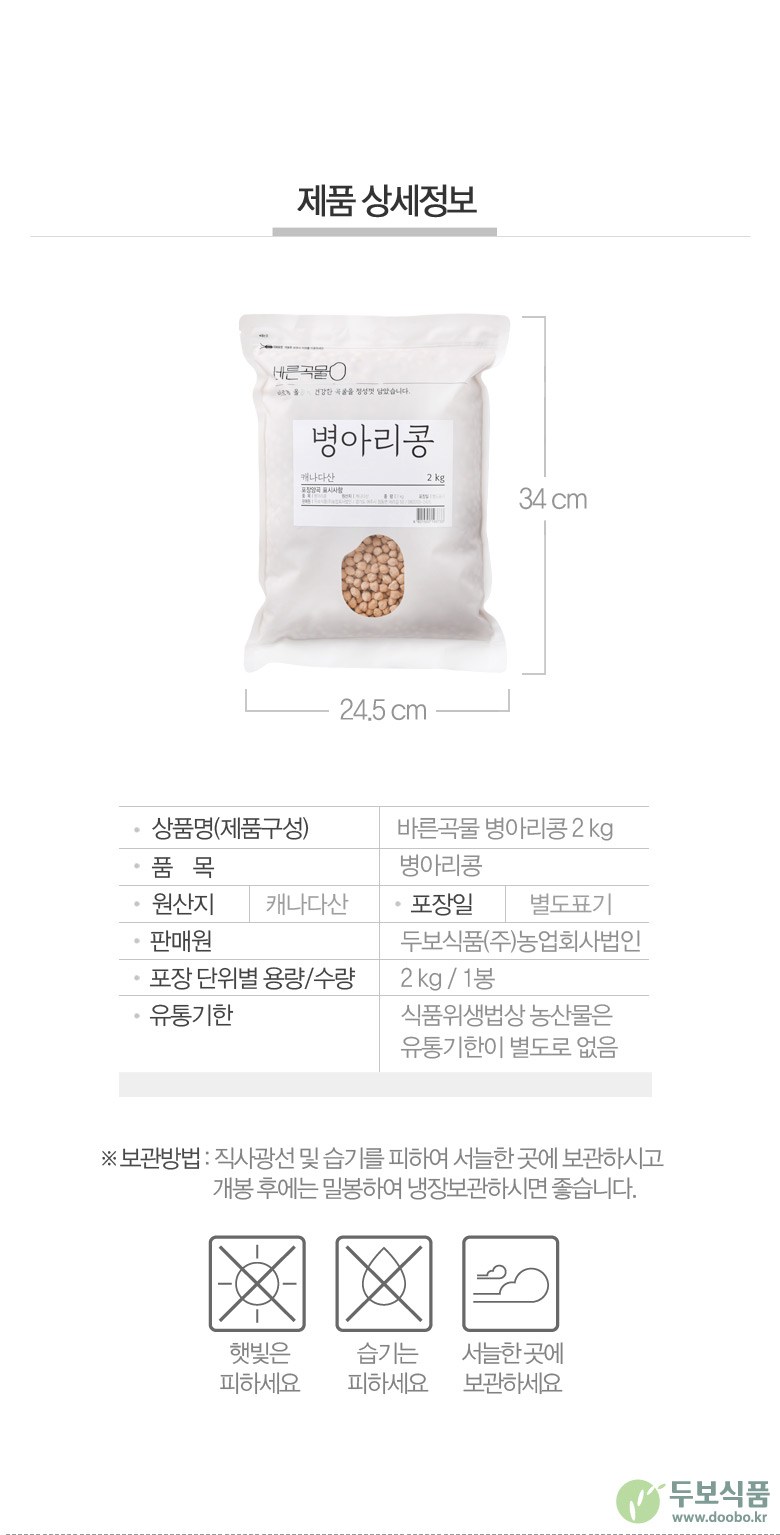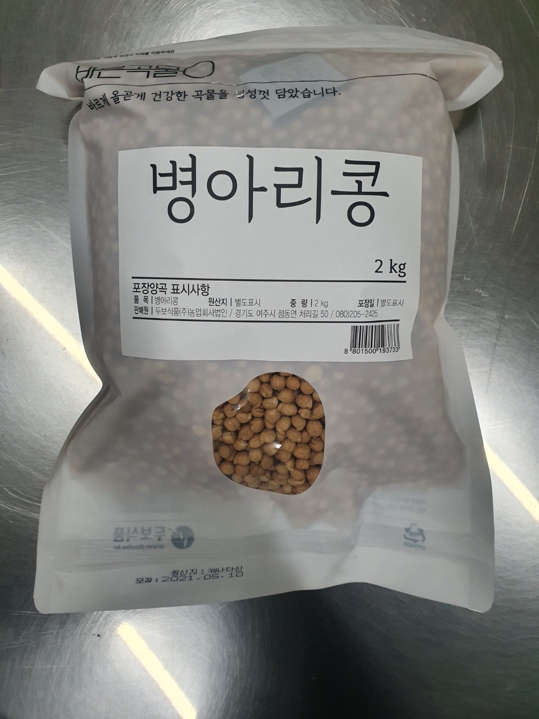| 품목 또는 명칭 | 바른곡물 병아리콩 | 포장단위별 내용물의 용량(중량),수량,크기 | 2kg*1봉 |