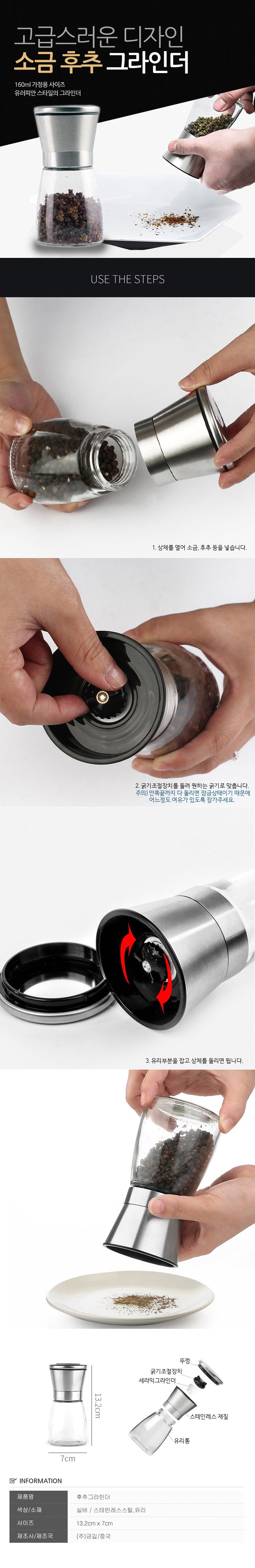 | 품명 및 모델명 | 소금 후추 그라인더 160ml 후추 그라인더 | 재질 | 컨텐츠 참조 |