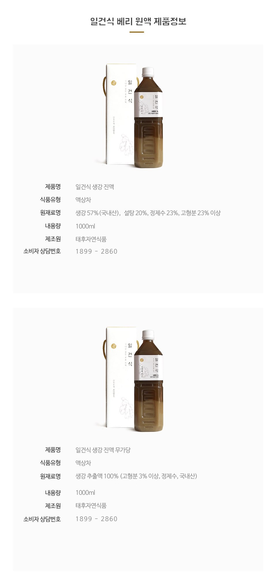 | 제품명 | 일건식 생강 진액 무가당 | 식품의 유형 | 액상차 |
