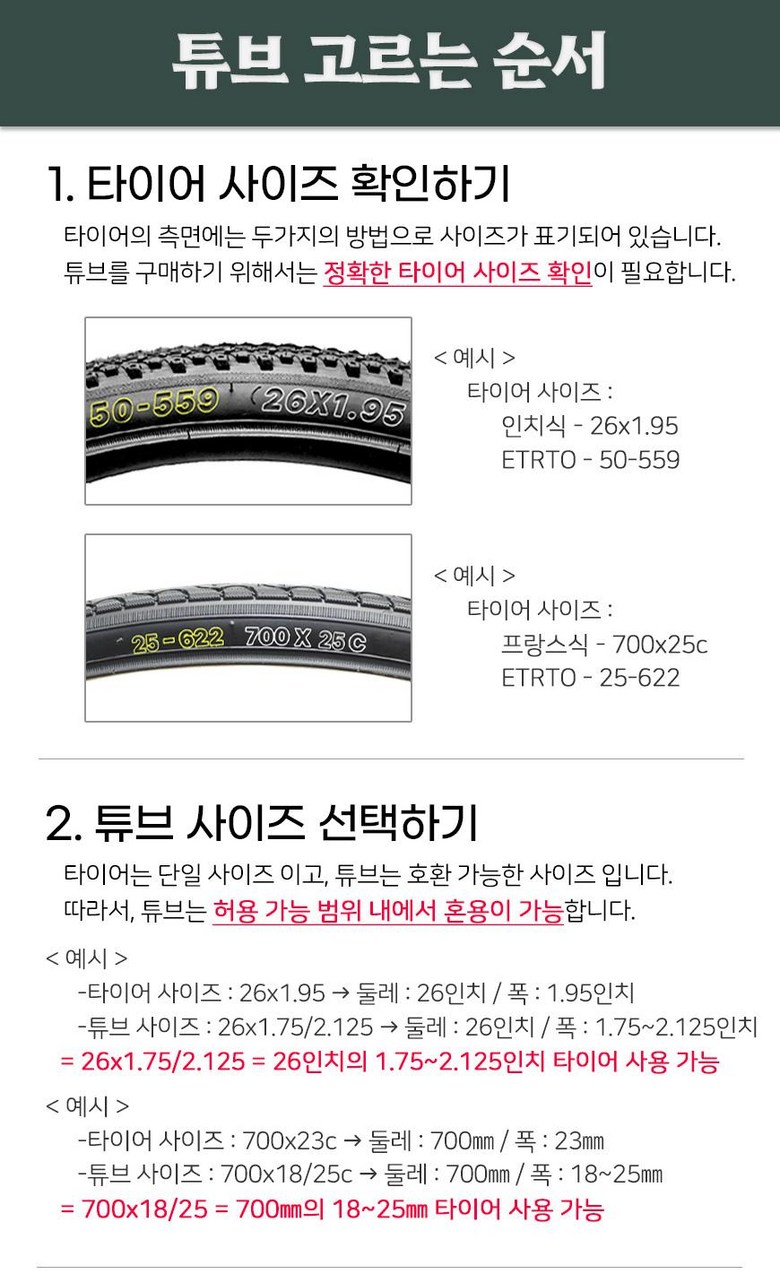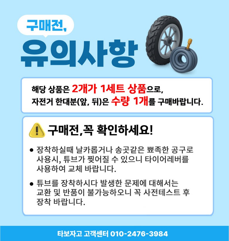 | 재질 | 합성고무 (butyl) | 제품 구성 | 튜브 2개, 밸브캡 |