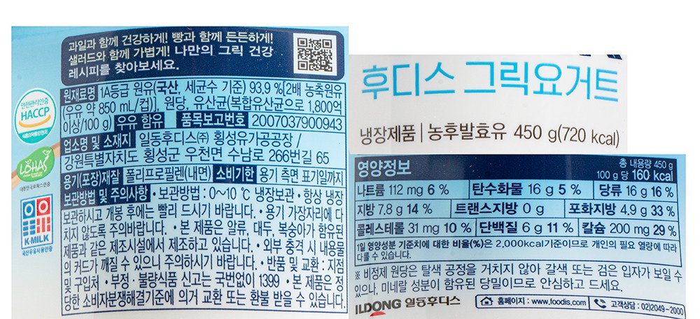 | 제품명 | 그릭요거트 플레인 | 식품의 유형 | 컨텐츠 참조 |