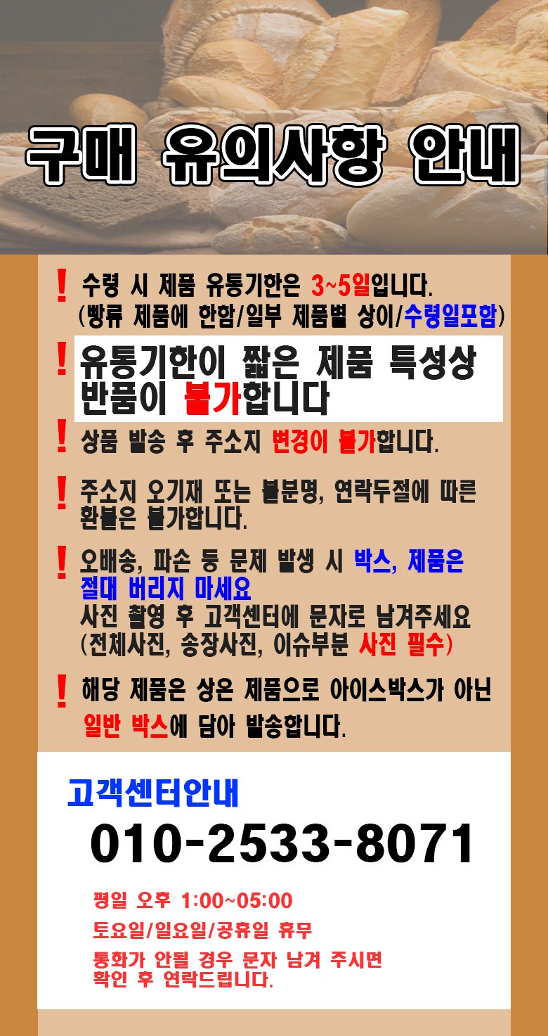 | 생산자 및 소재지 | 상품 상세페이지 참조 | 제조연월일, 소비기한 또는 품질유지기한 | 수령 후 3 ~ 5일 / 제주 지역은 더 짧거나 다소 차이가 있을 수 있음 |