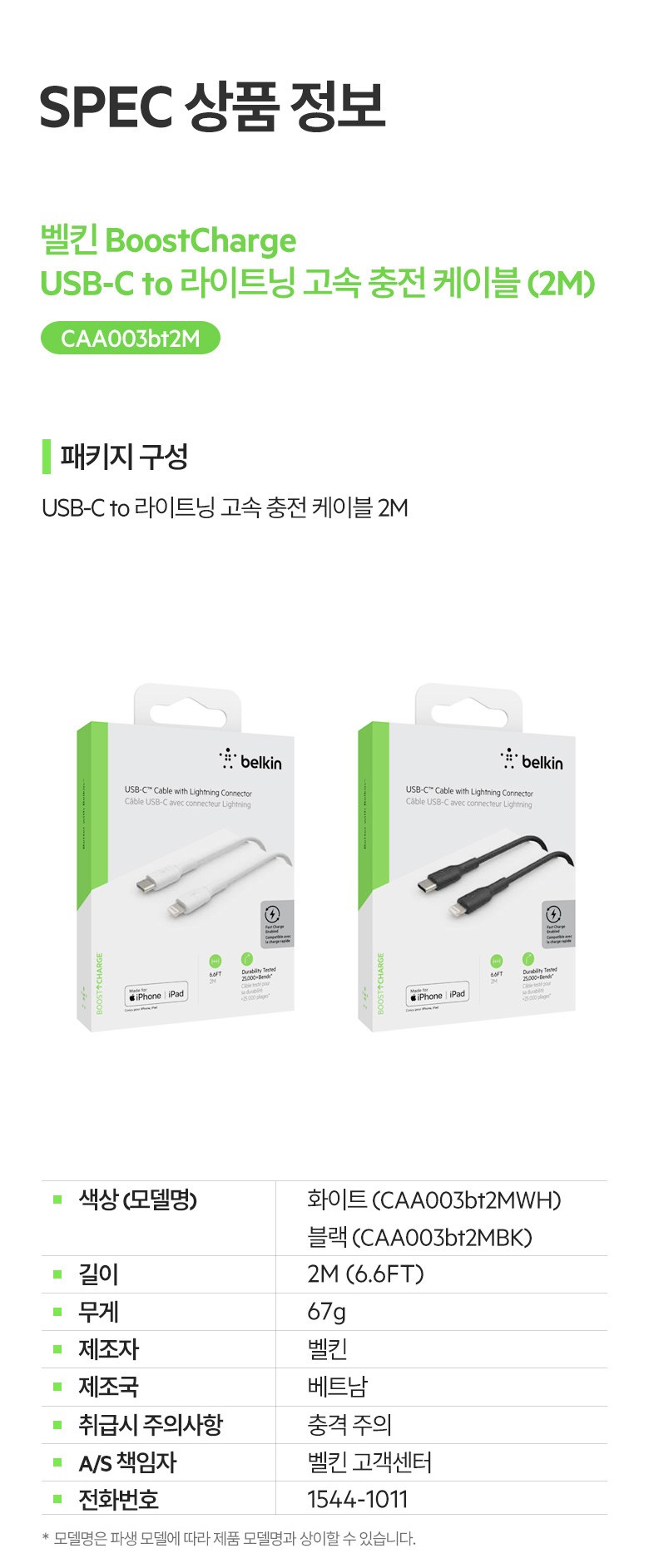 | 품명 및 모델명 | USB-C to 라이트닝 고속 충전 케이블, CAA003bt2M | 인증/허가 사항 | 해당없음 |
